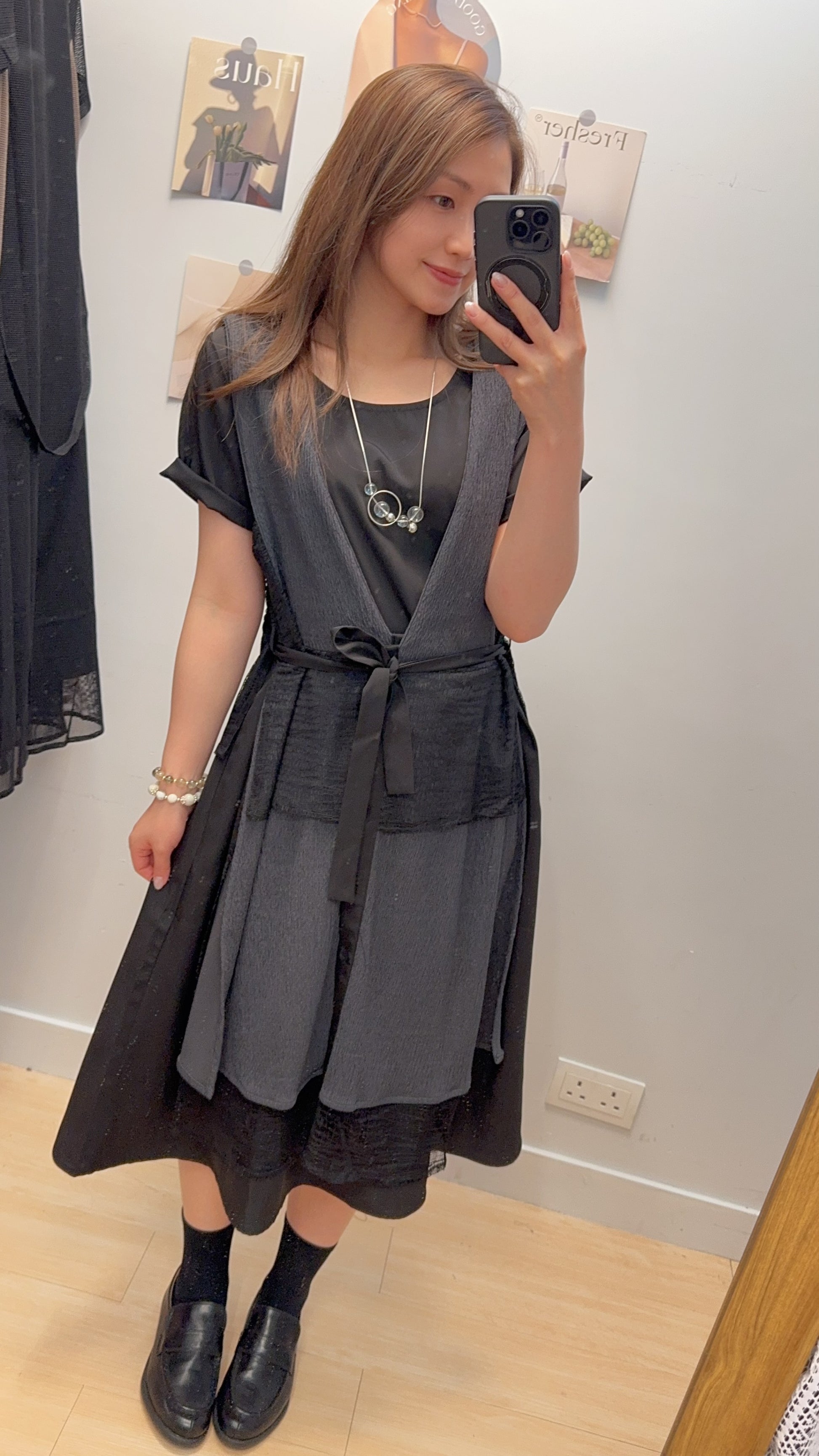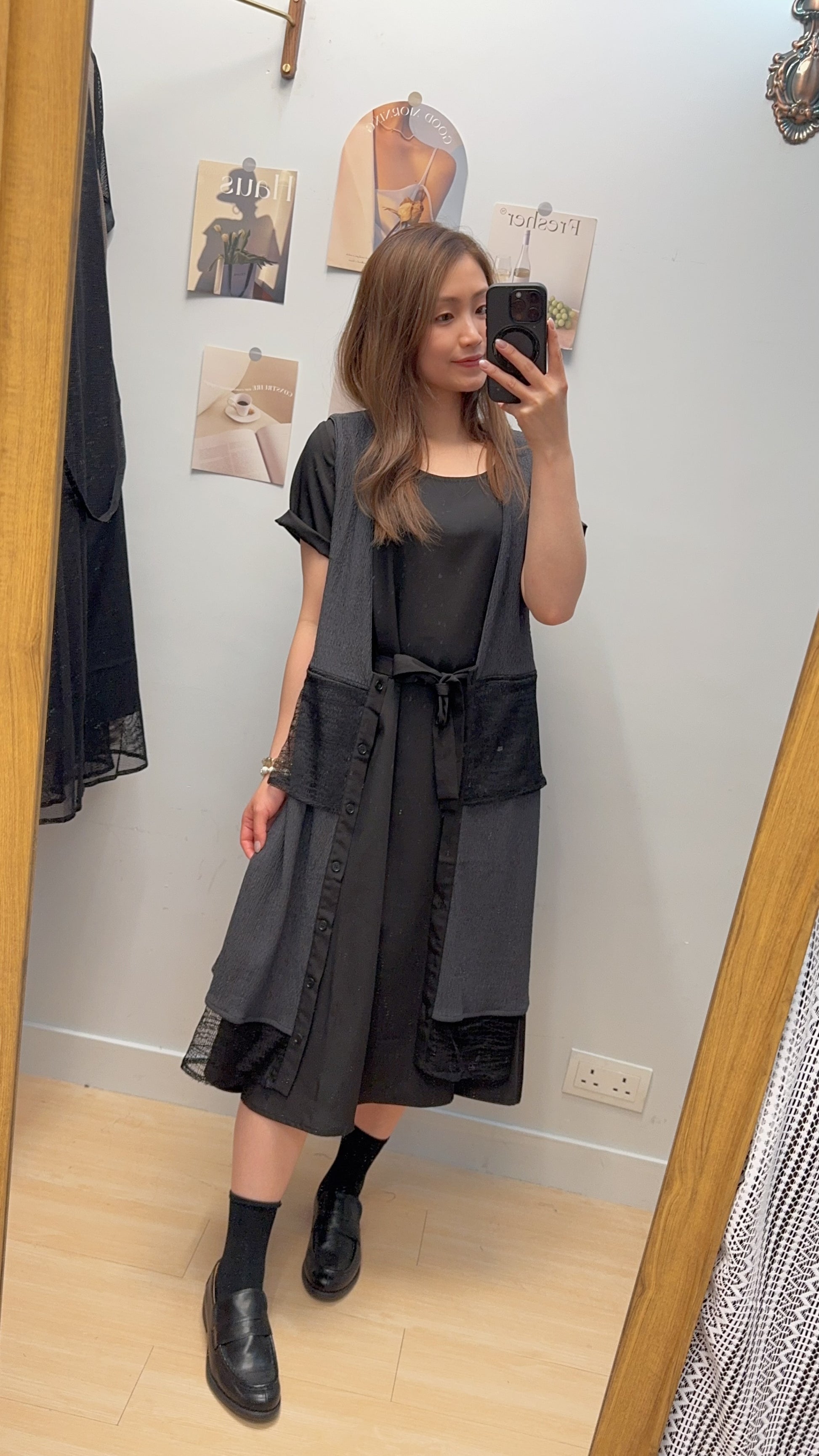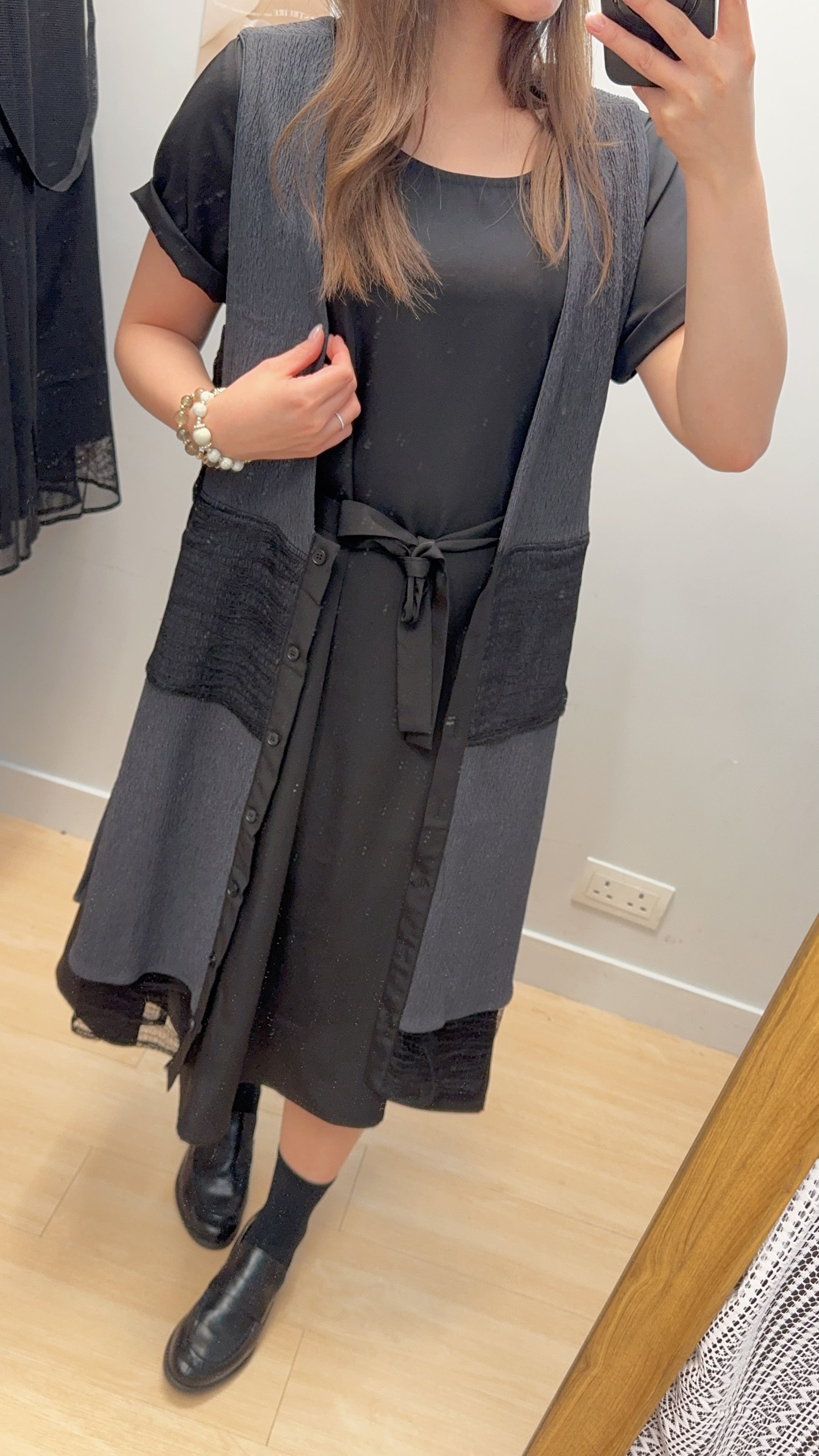 ♥︎. 滑底裙+皺皺毛巾料背心外套