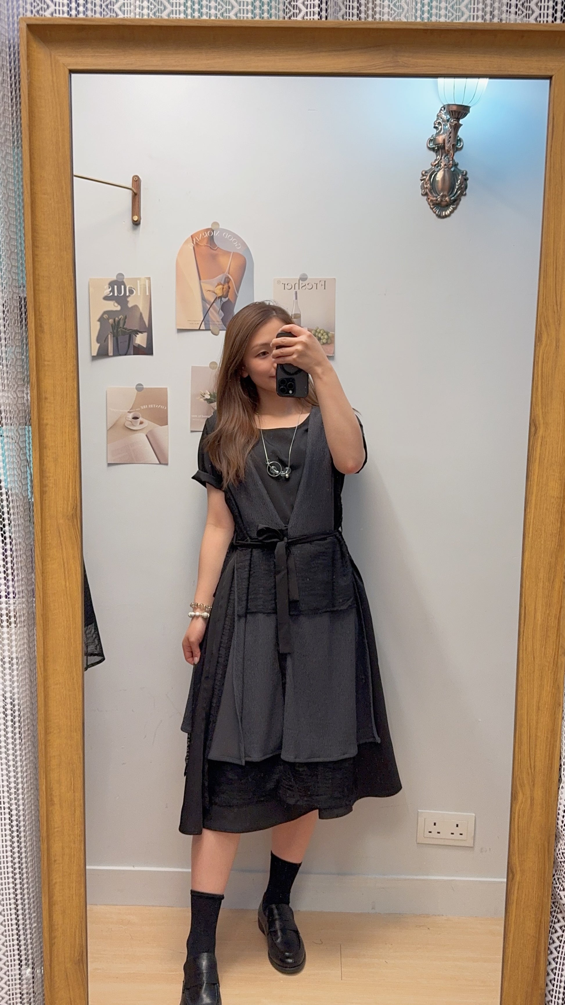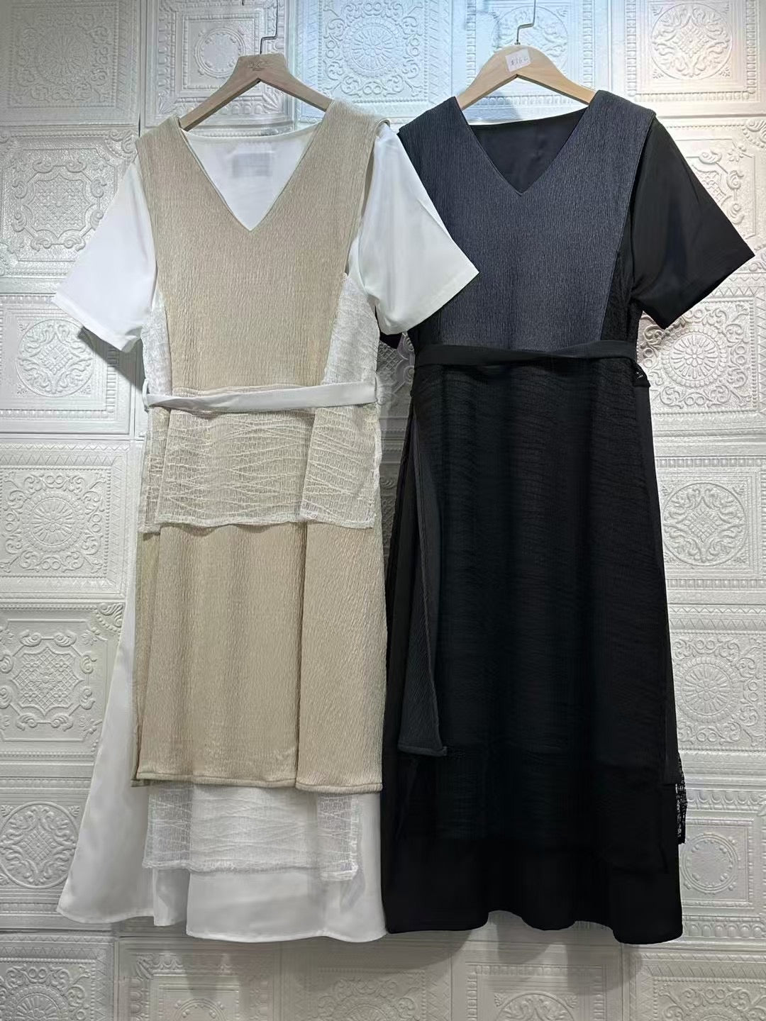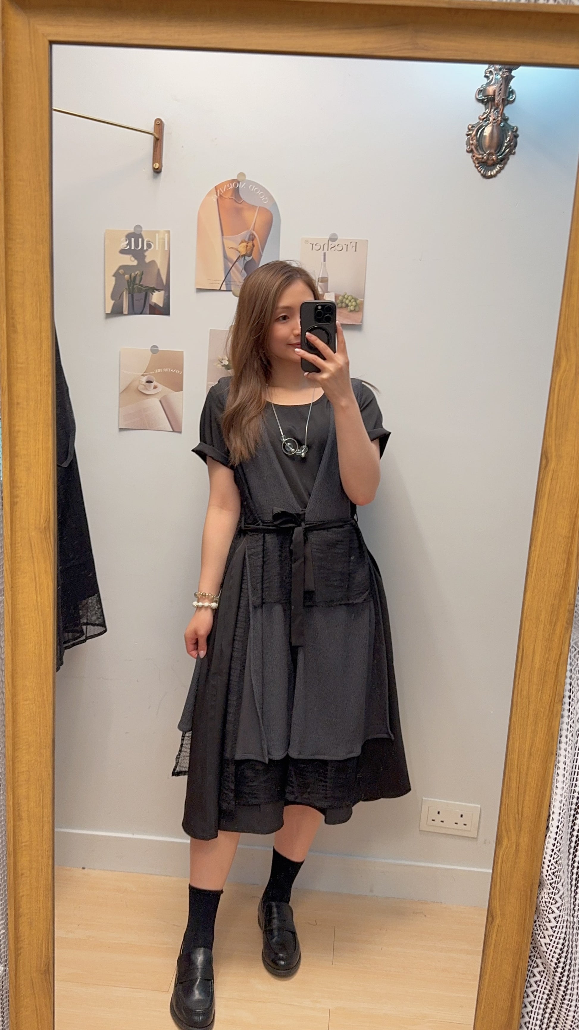 ♥︎. 滑底裙+皺皺毛巾料背心外套