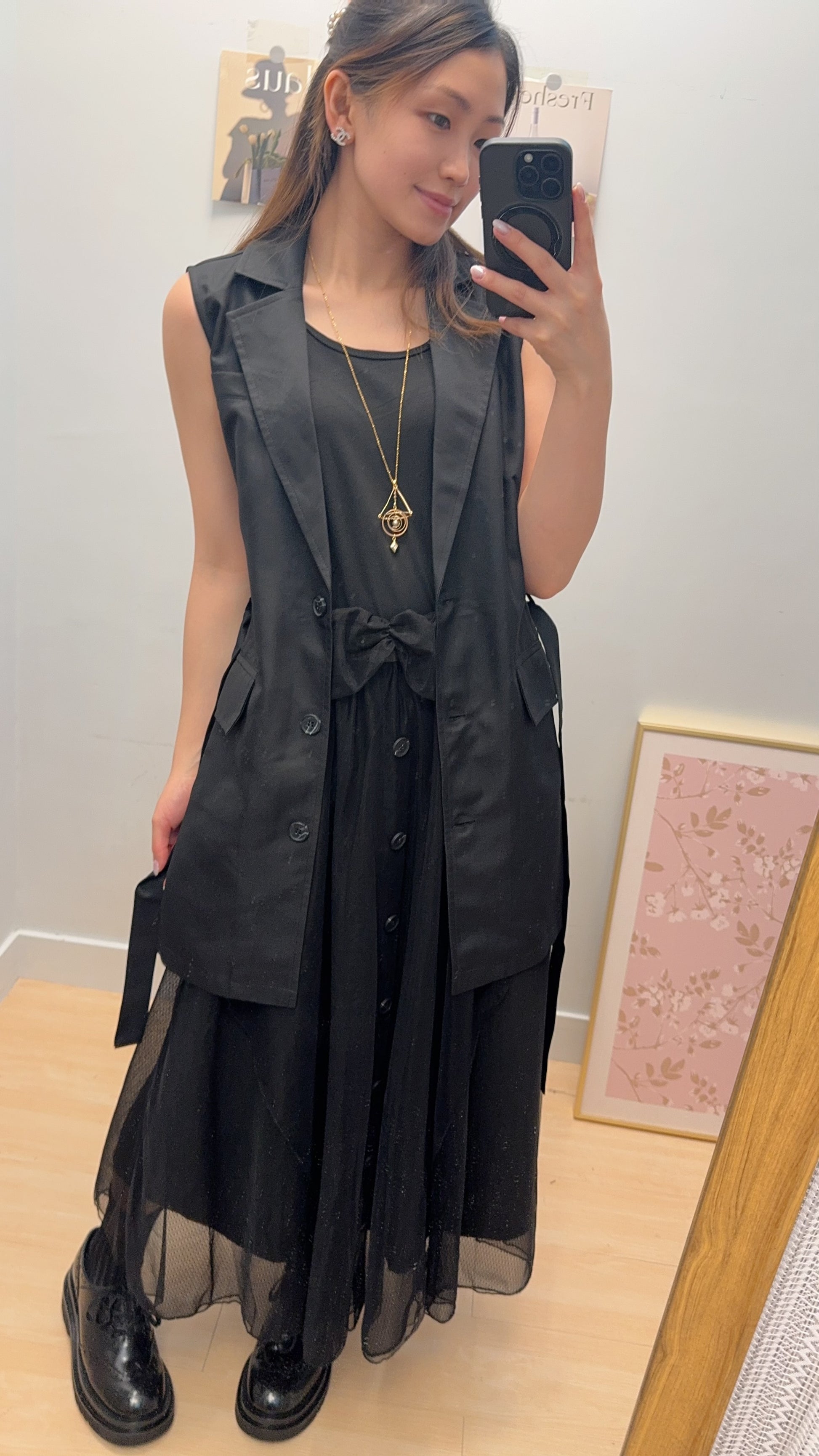 B52910 《後蝴蝶結西裝背心》 兩色(杏/黑)