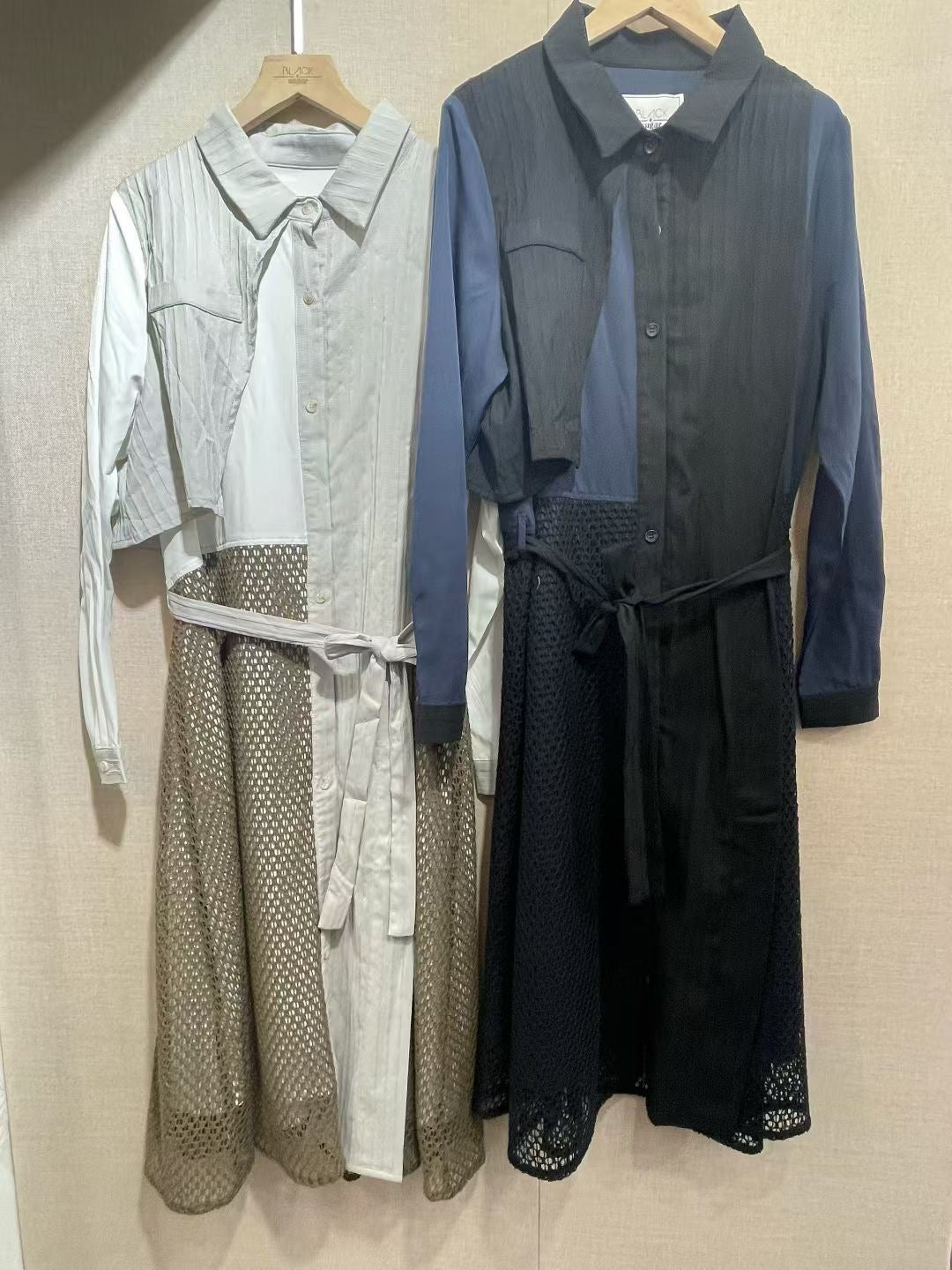 B53710 《暗直紋拼通花OPS》 兩色(杏/黑)
