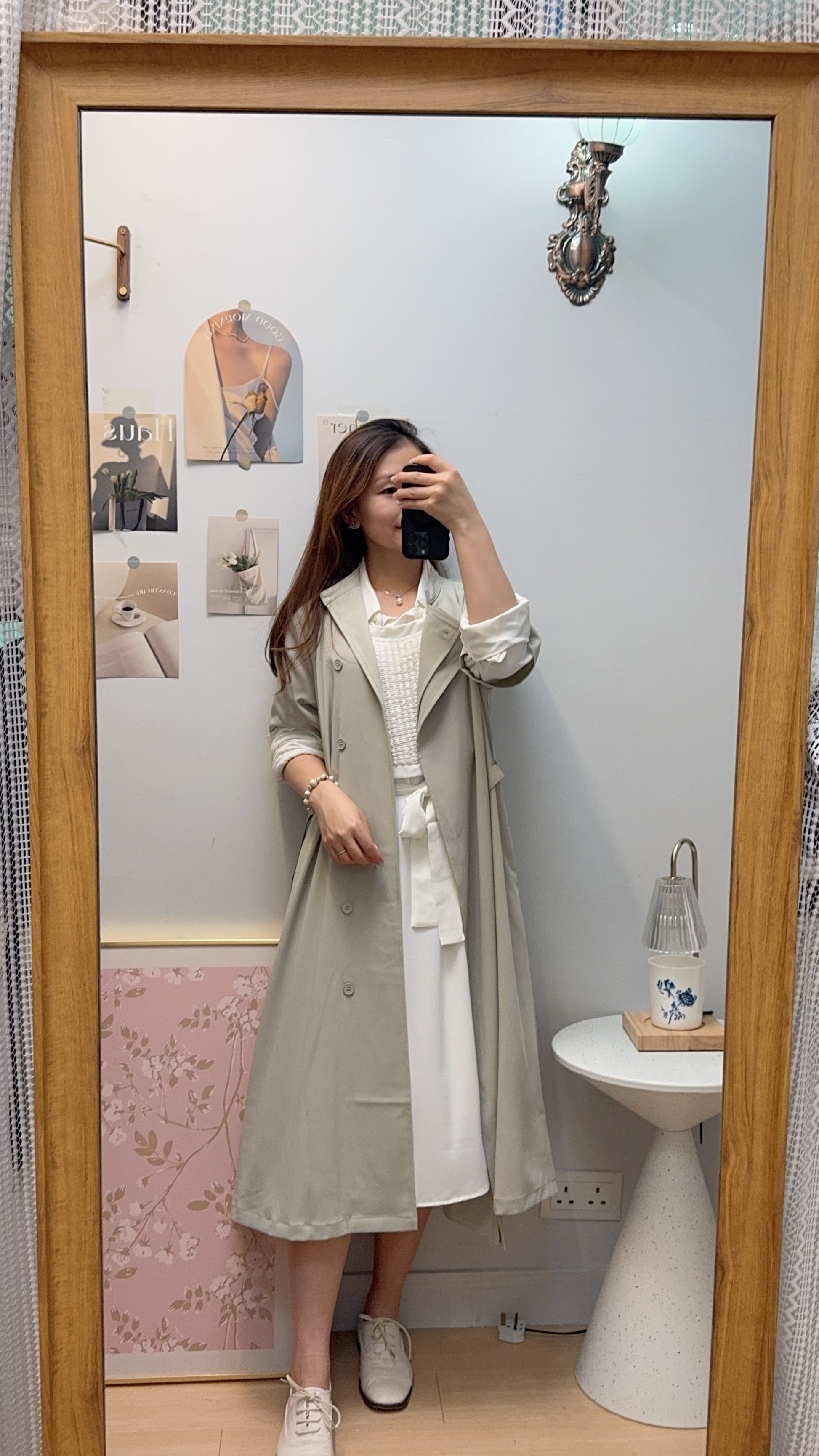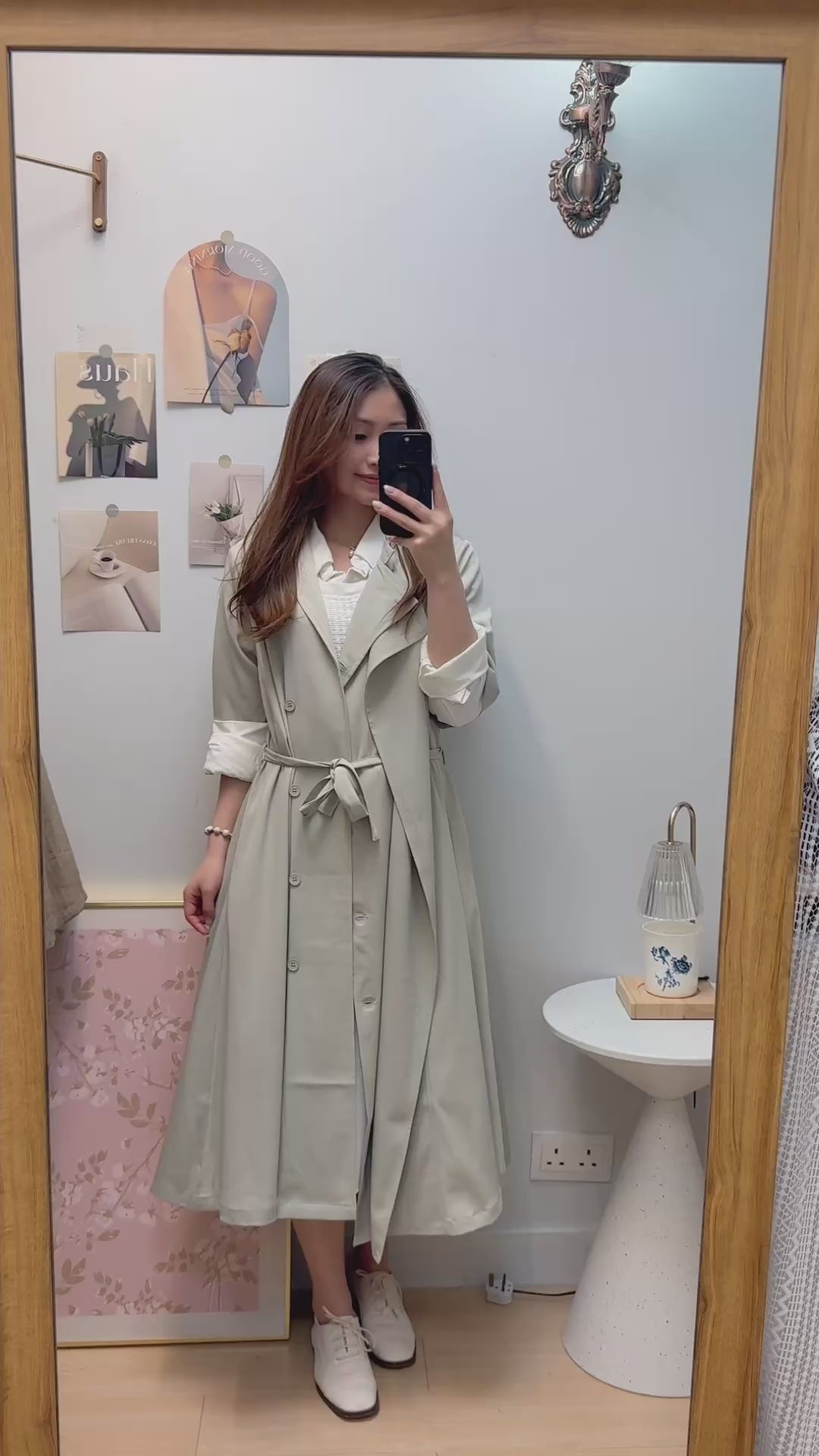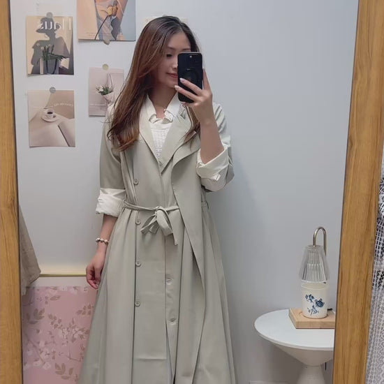 M258108 《超有氣質!靚色TRENCH COAT!!!!》 兩色(鼠尾草綠/灰藍/黑)