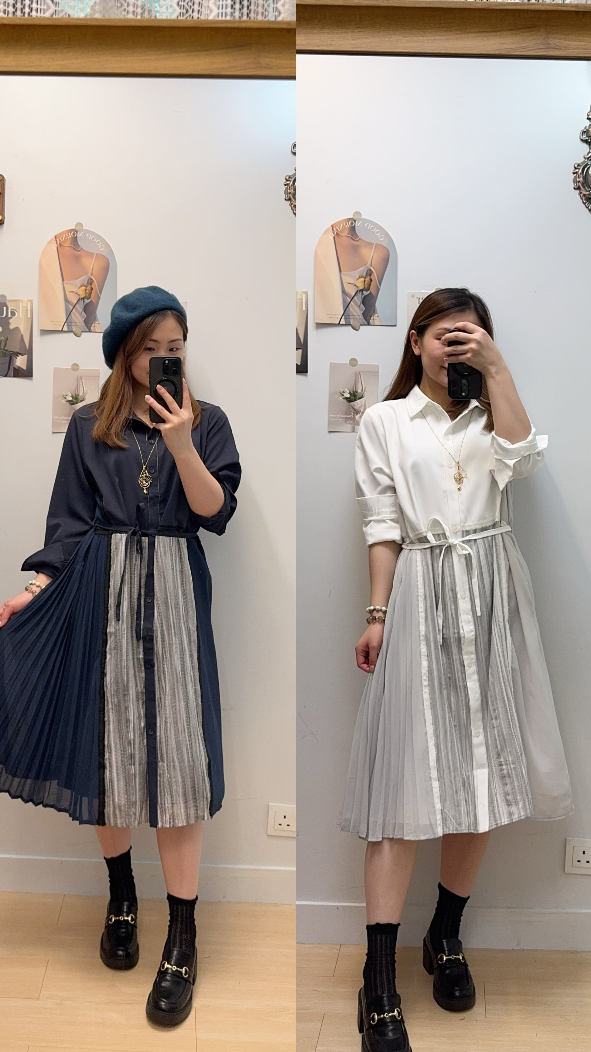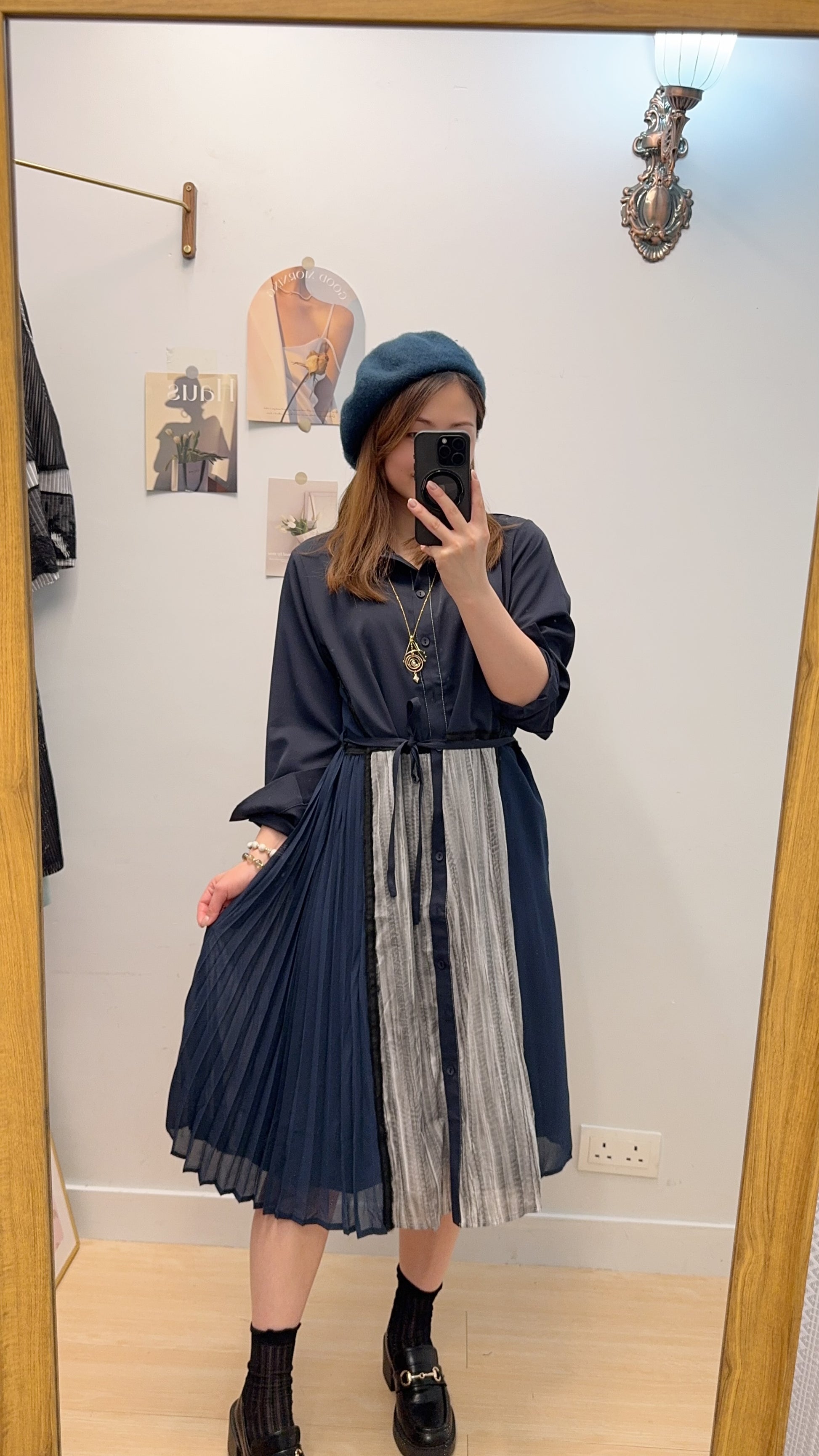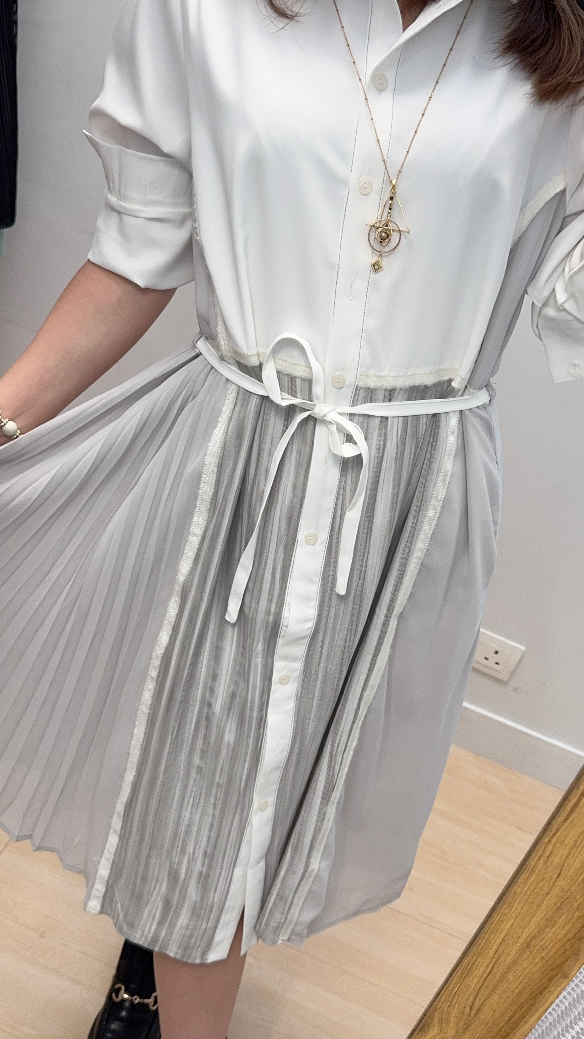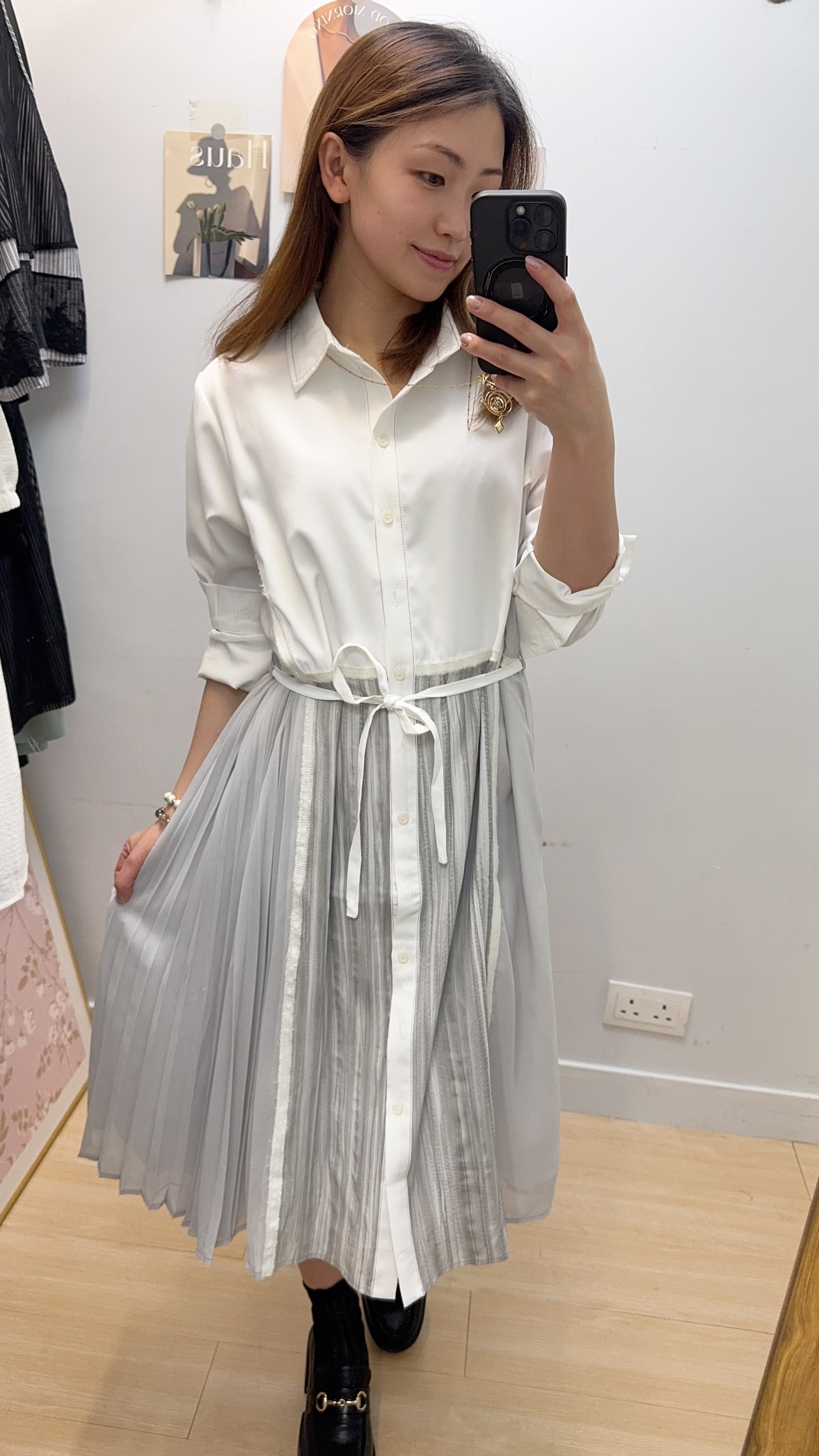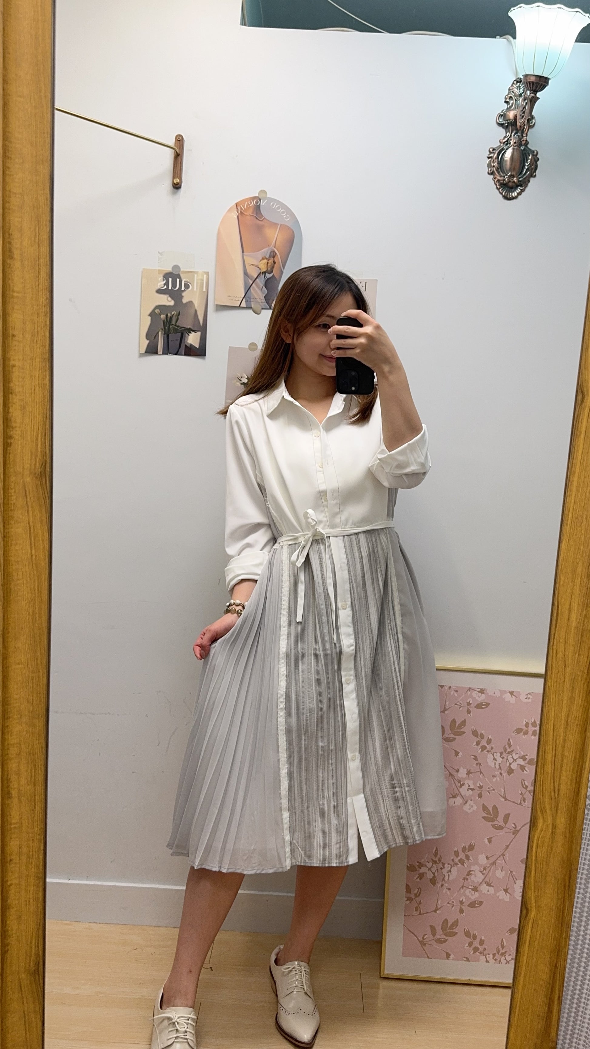 P173009 《斯文修腰拼扎染OPS》 兩色(白灰/黑藍)