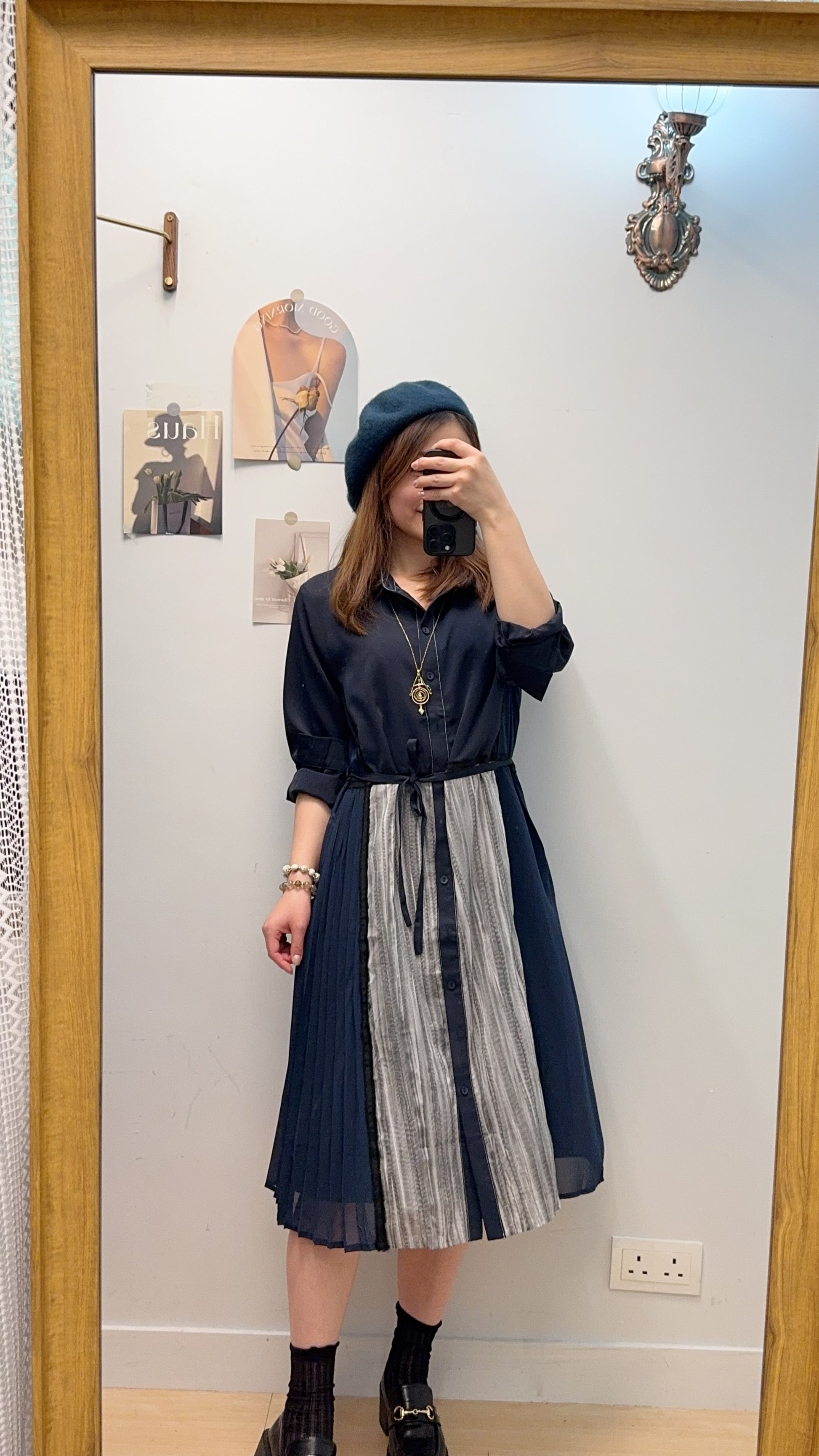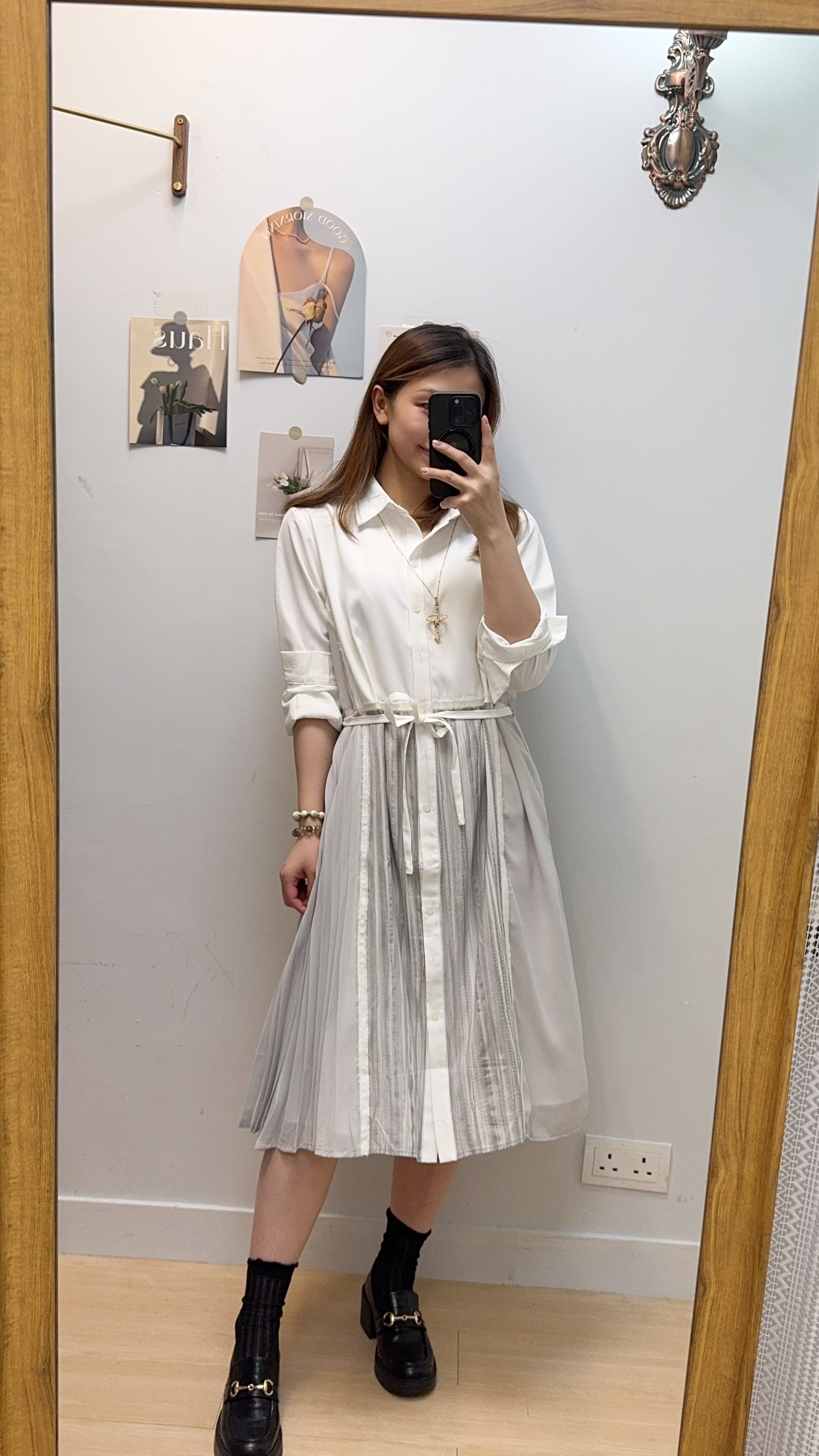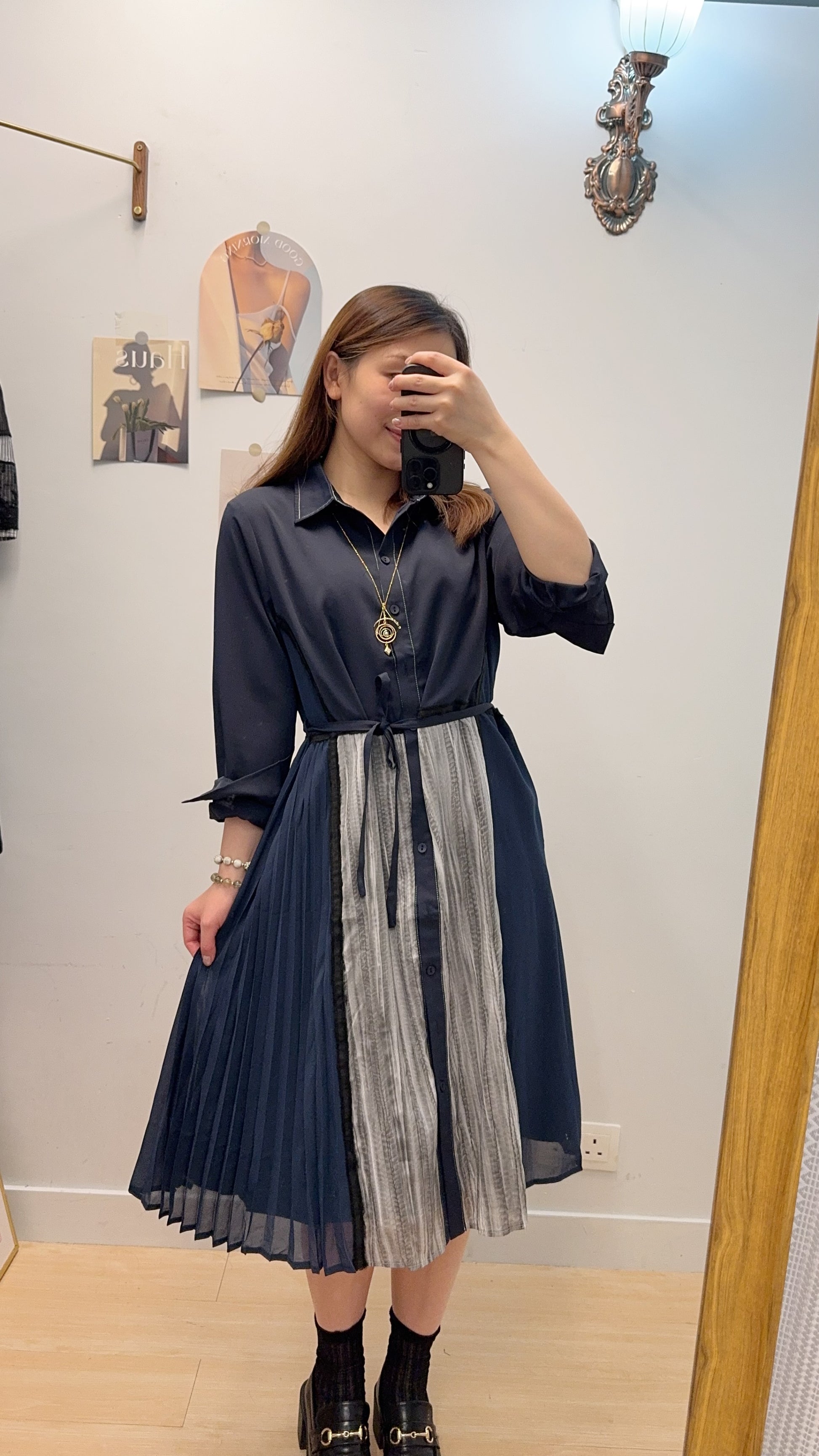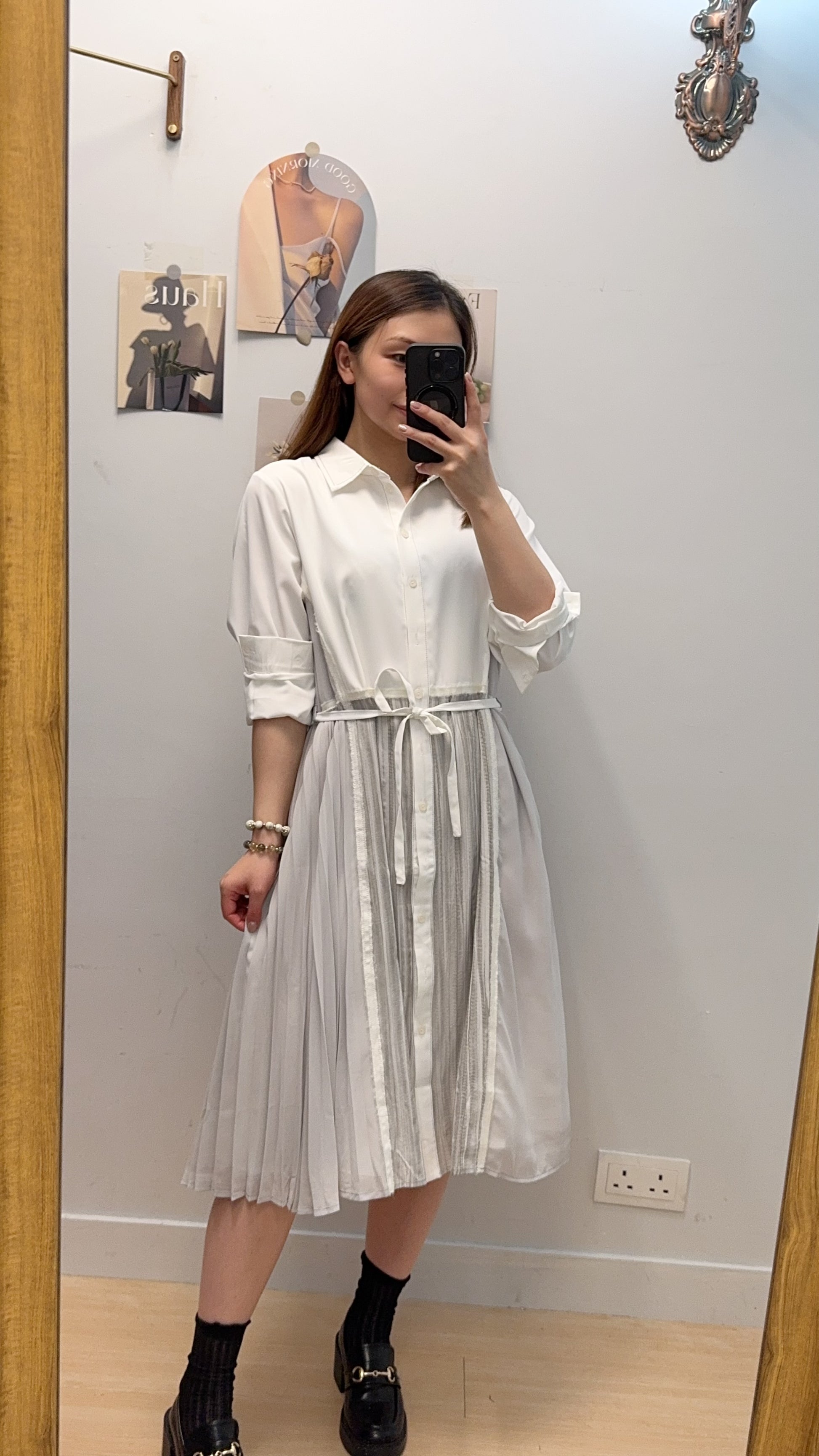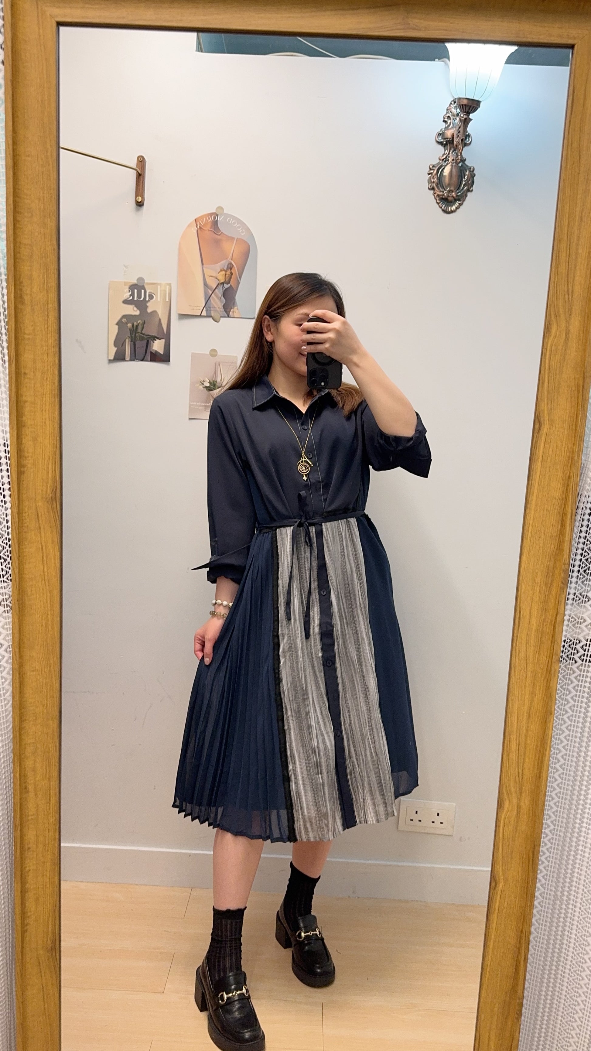 P173009 《斯文修腰拼扎染OPS》 兩色(白灰/黑藍)