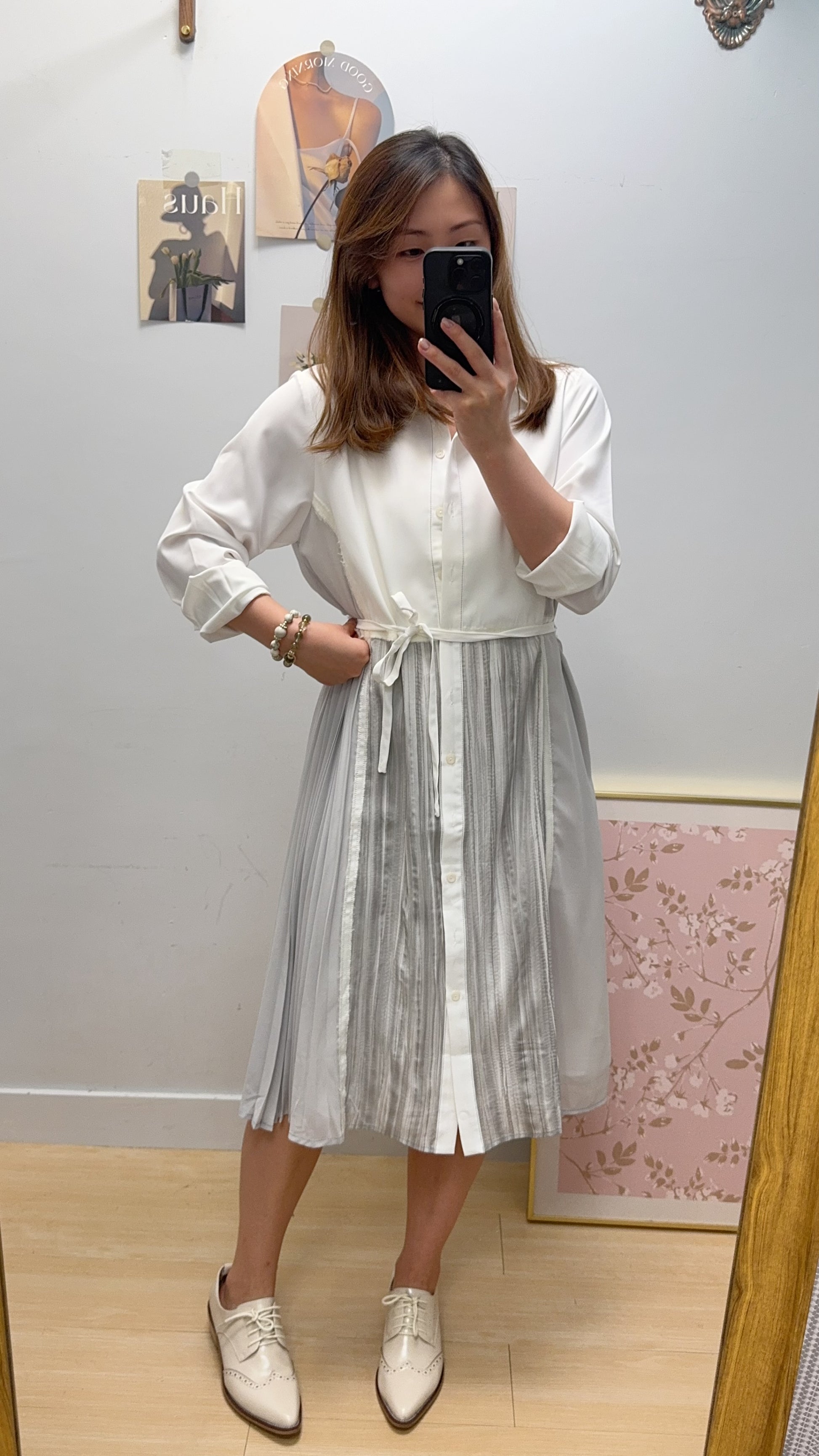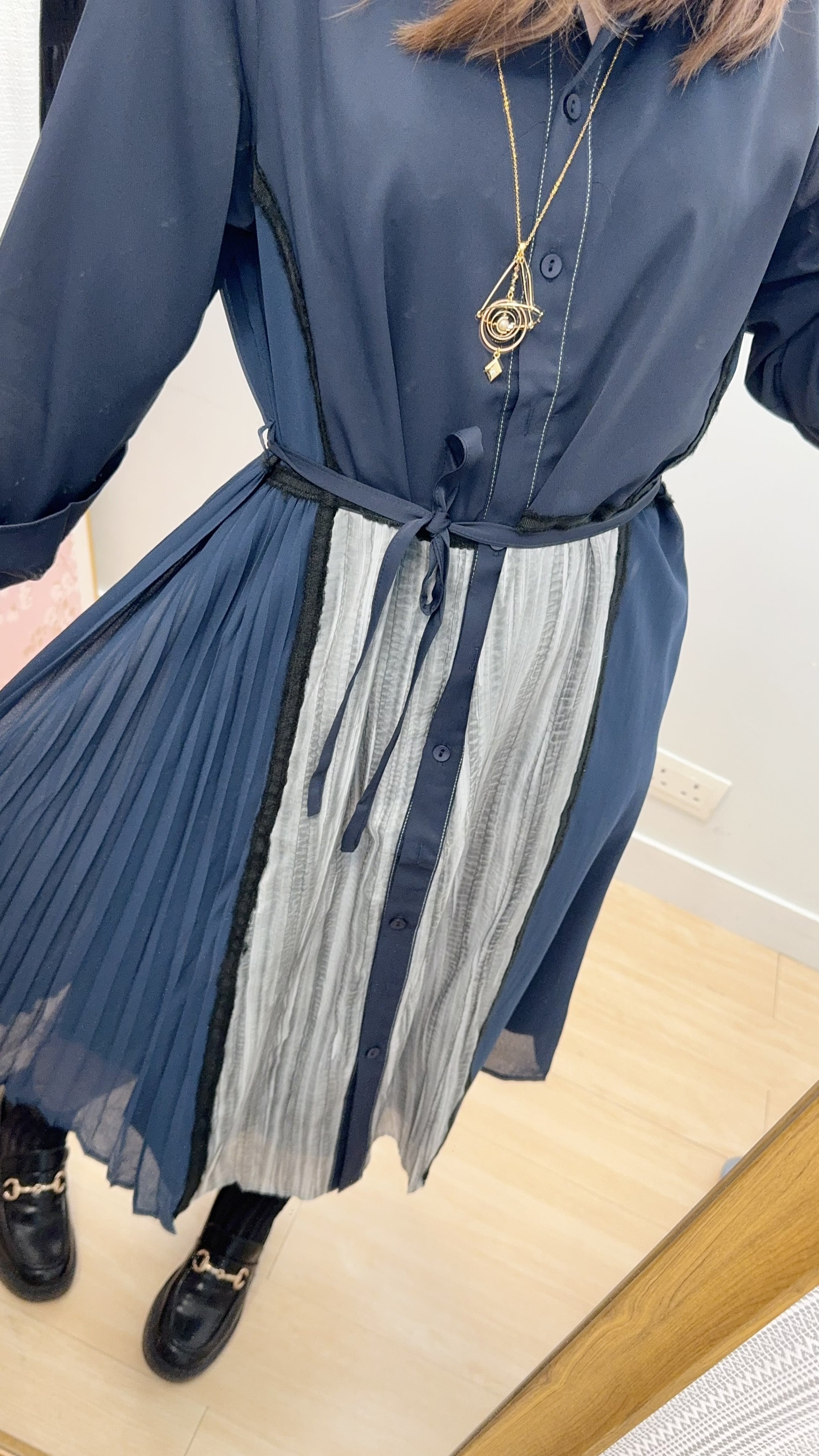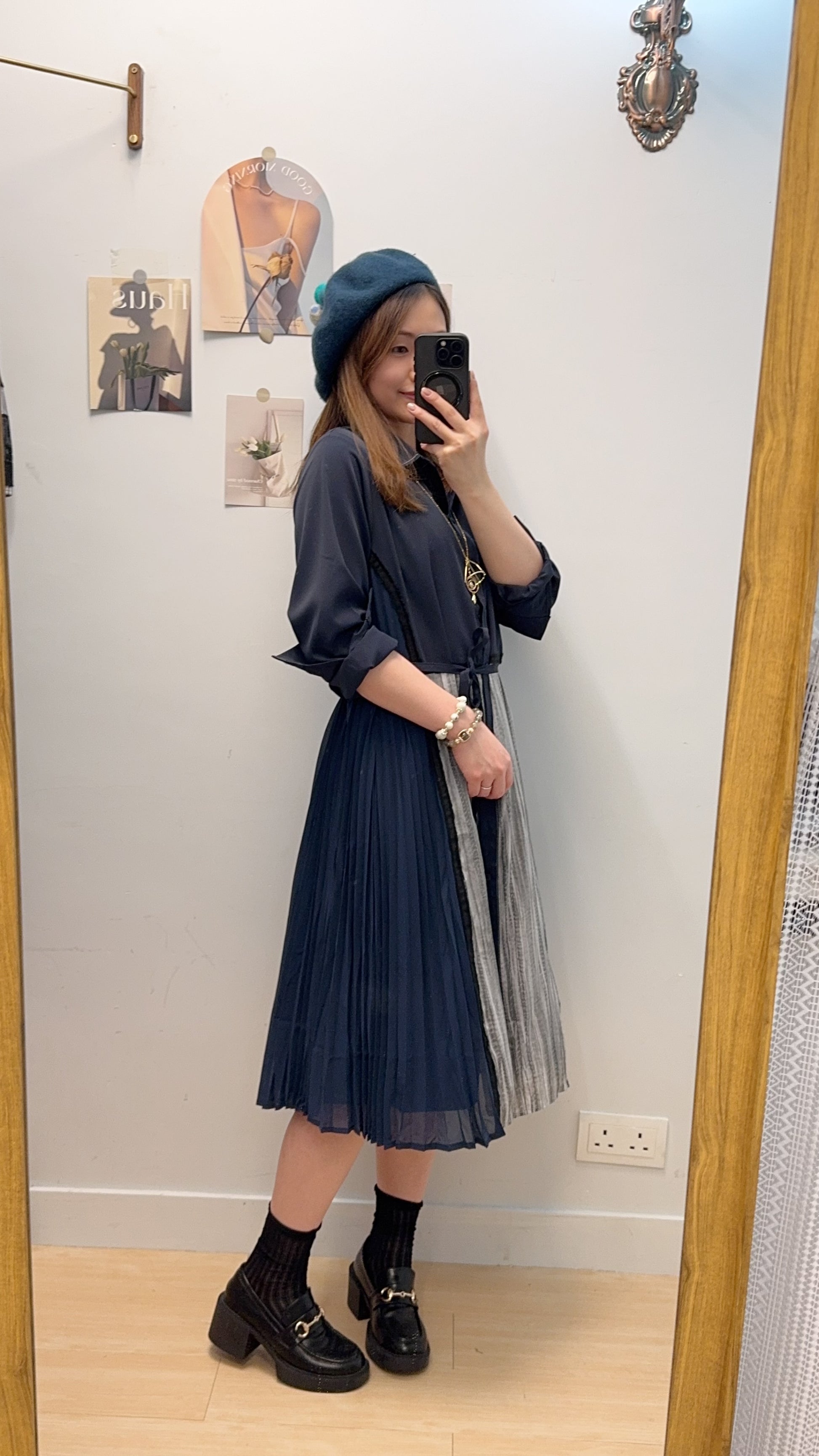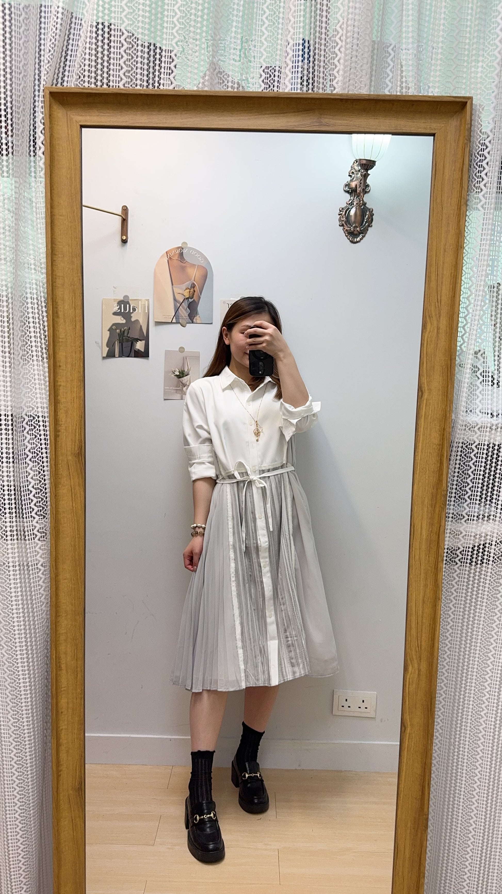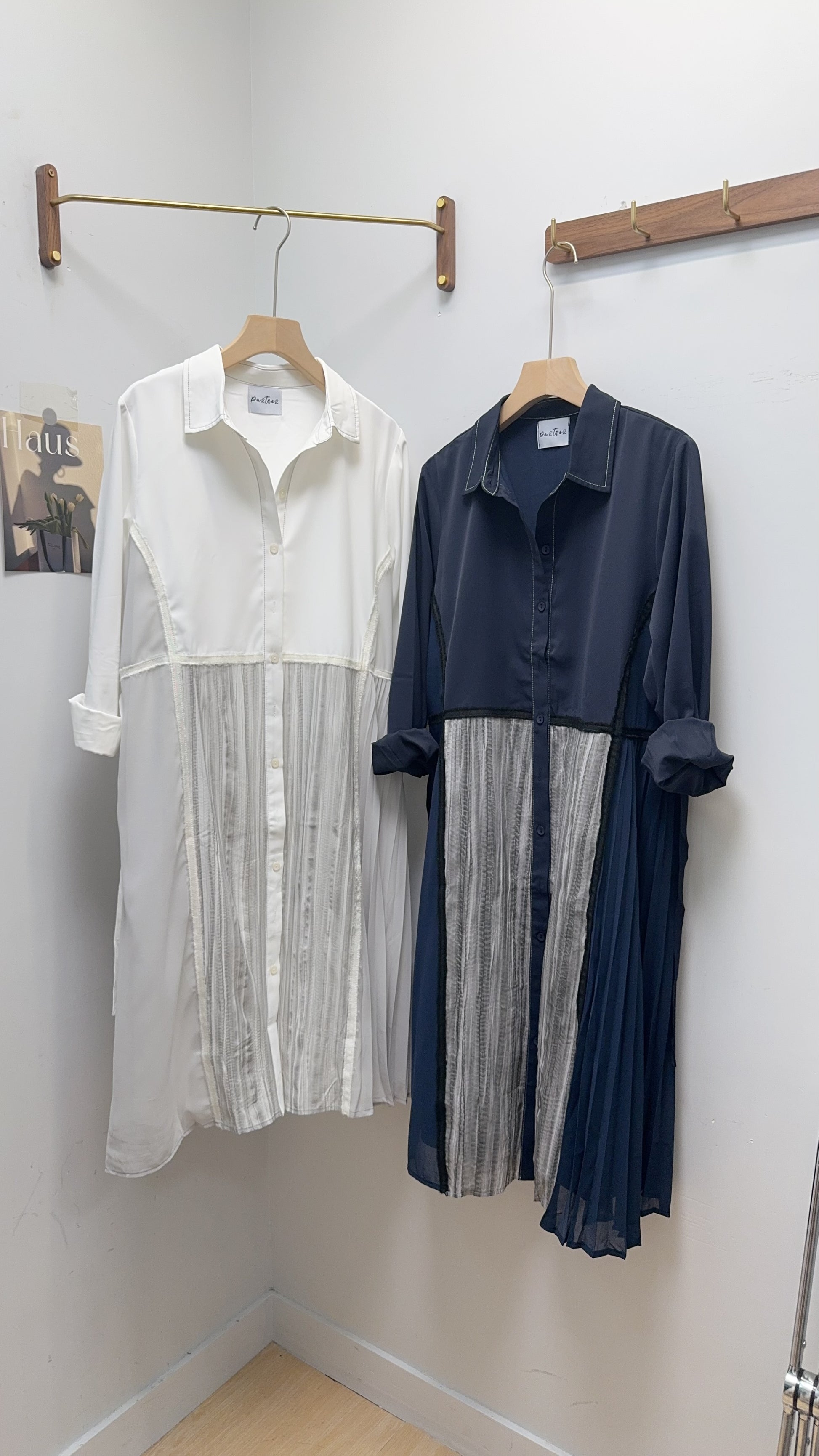 P173009 《斯文修腰拼扎染OPS》 兩色(白灰/黑藍)