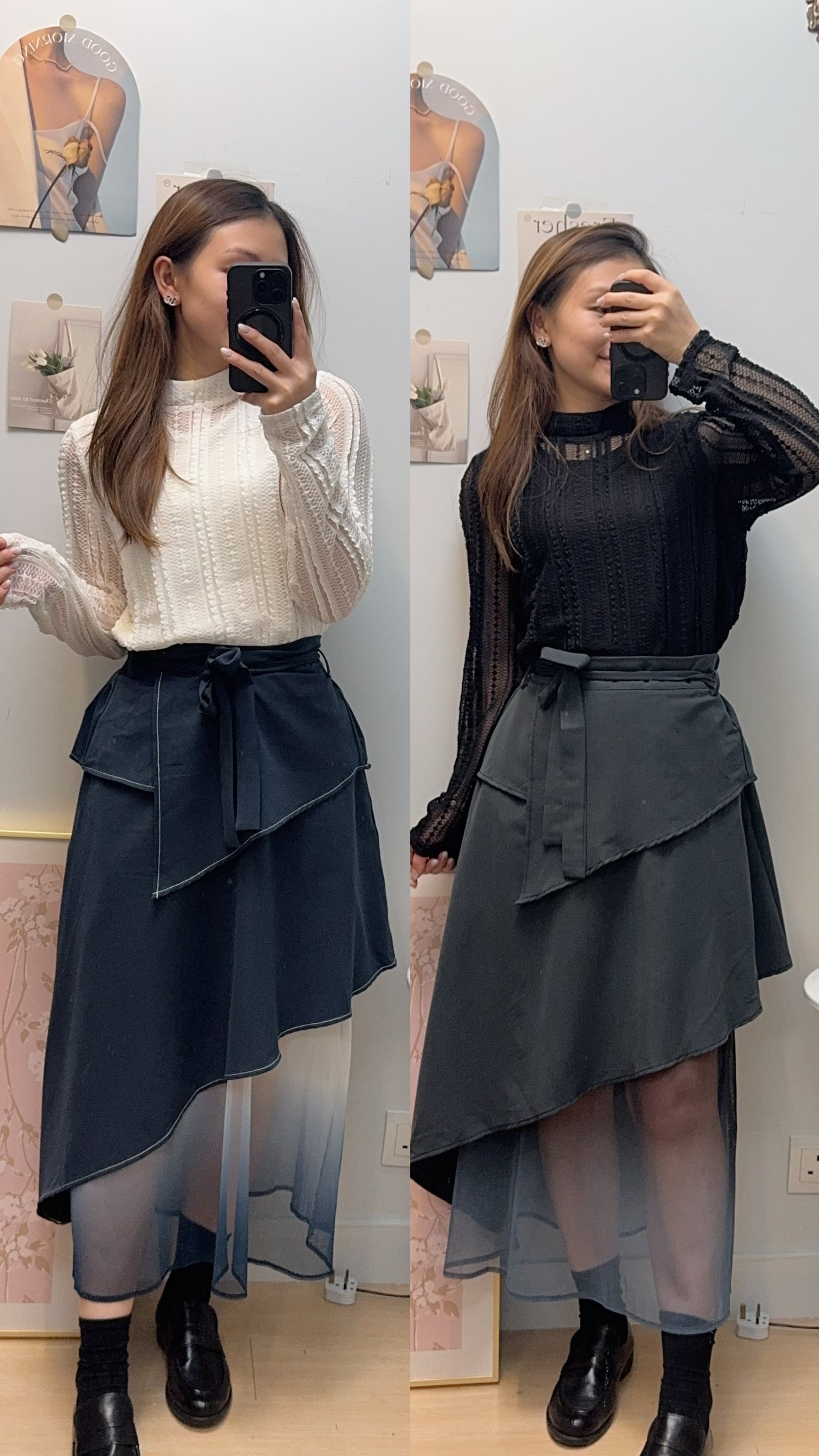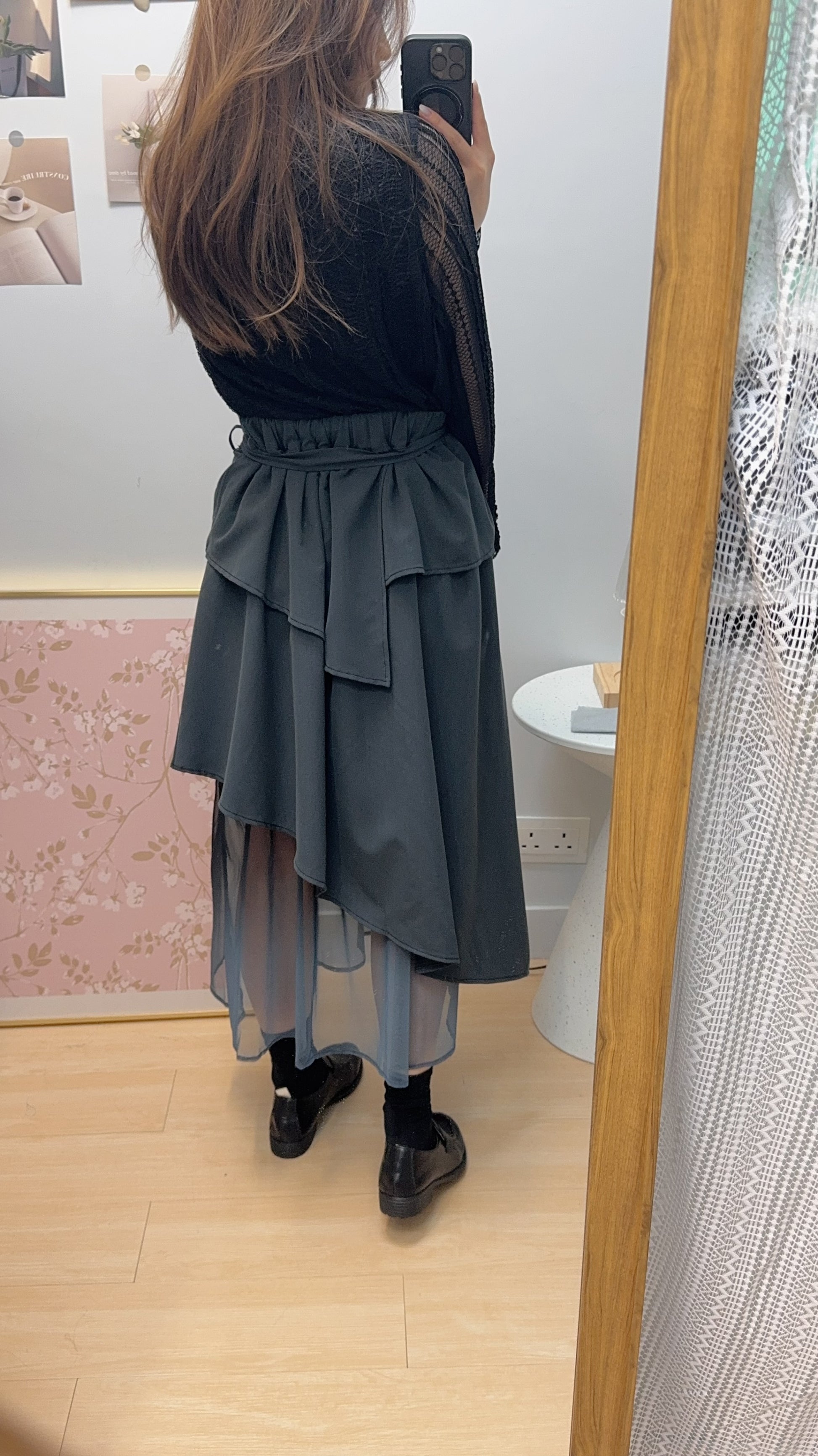 B52508《Layering吊染半截裙》 兩色(灰藍綠/藍)