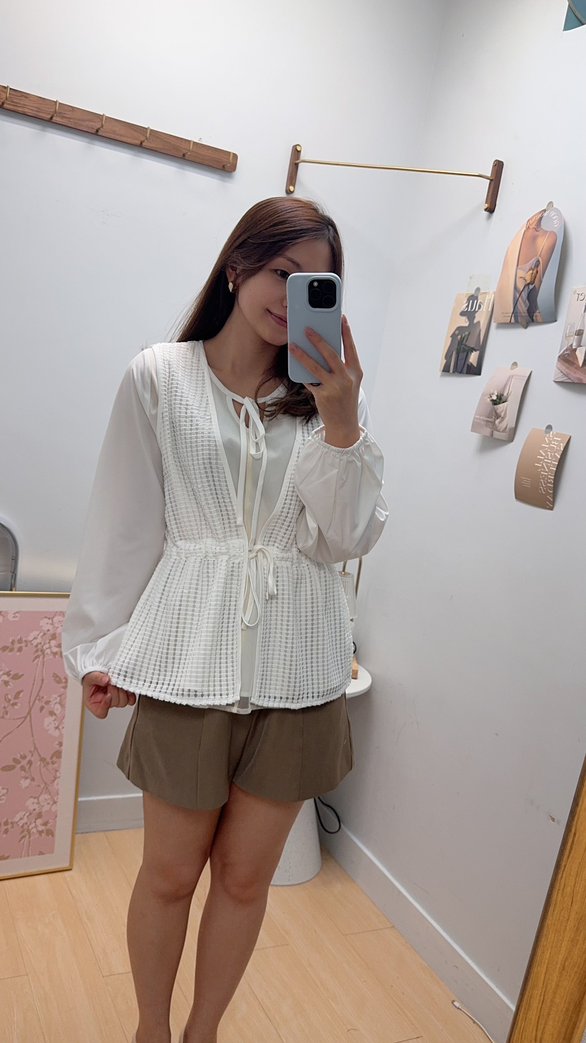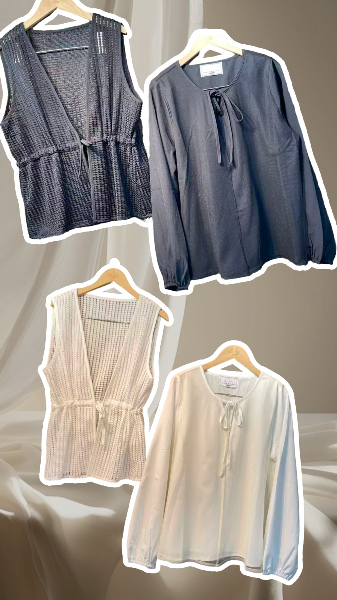 B53611 《兩件套:網背心+蝴蝶結領TOP》兩色(白/黑)
