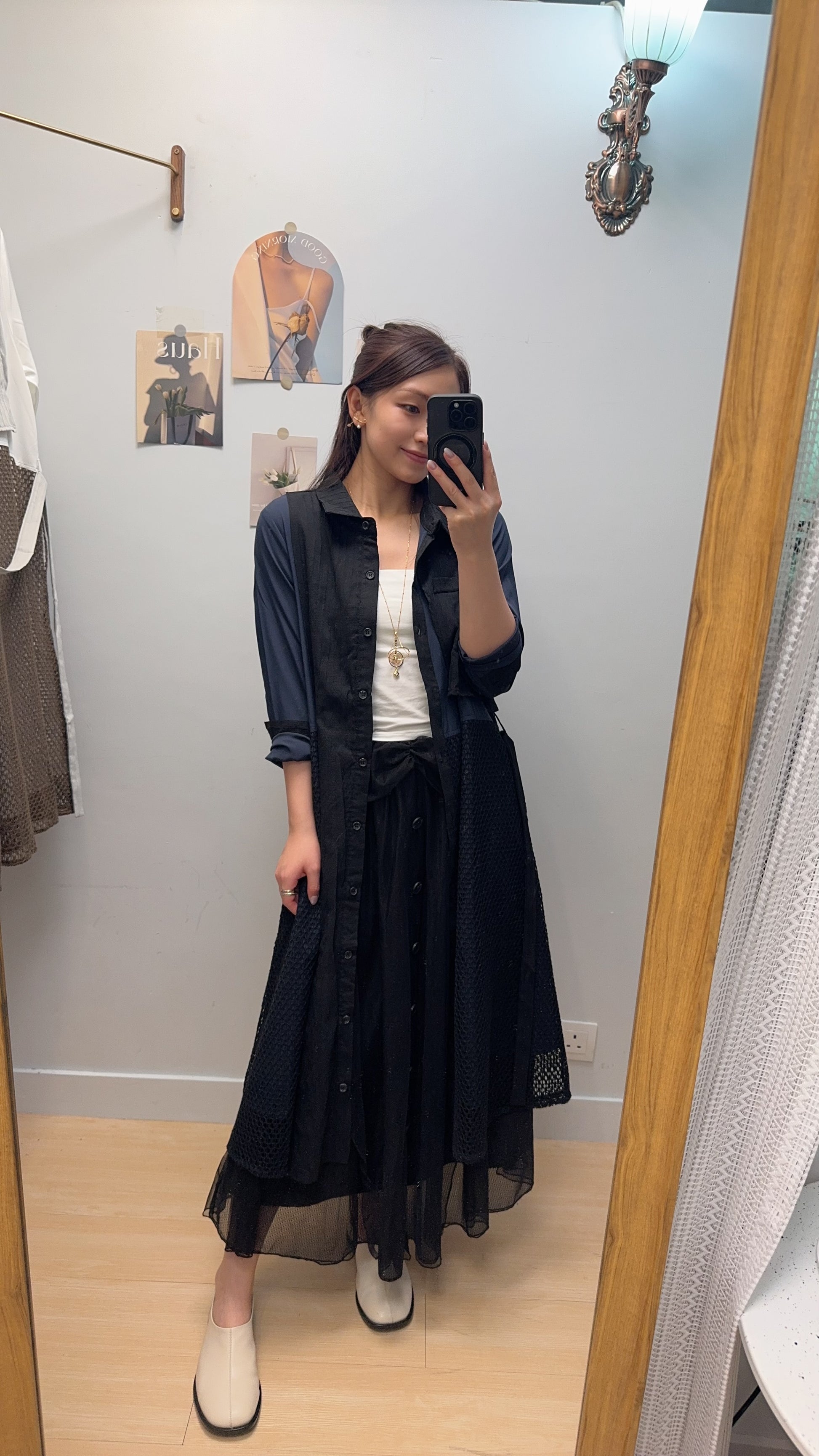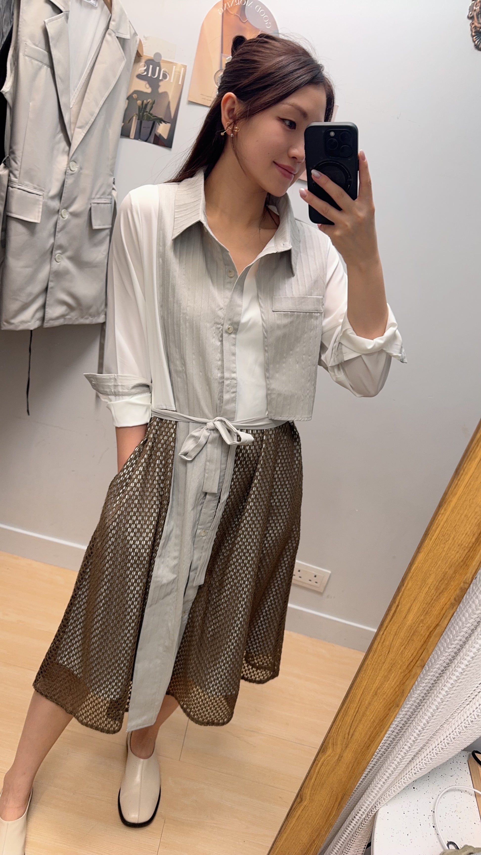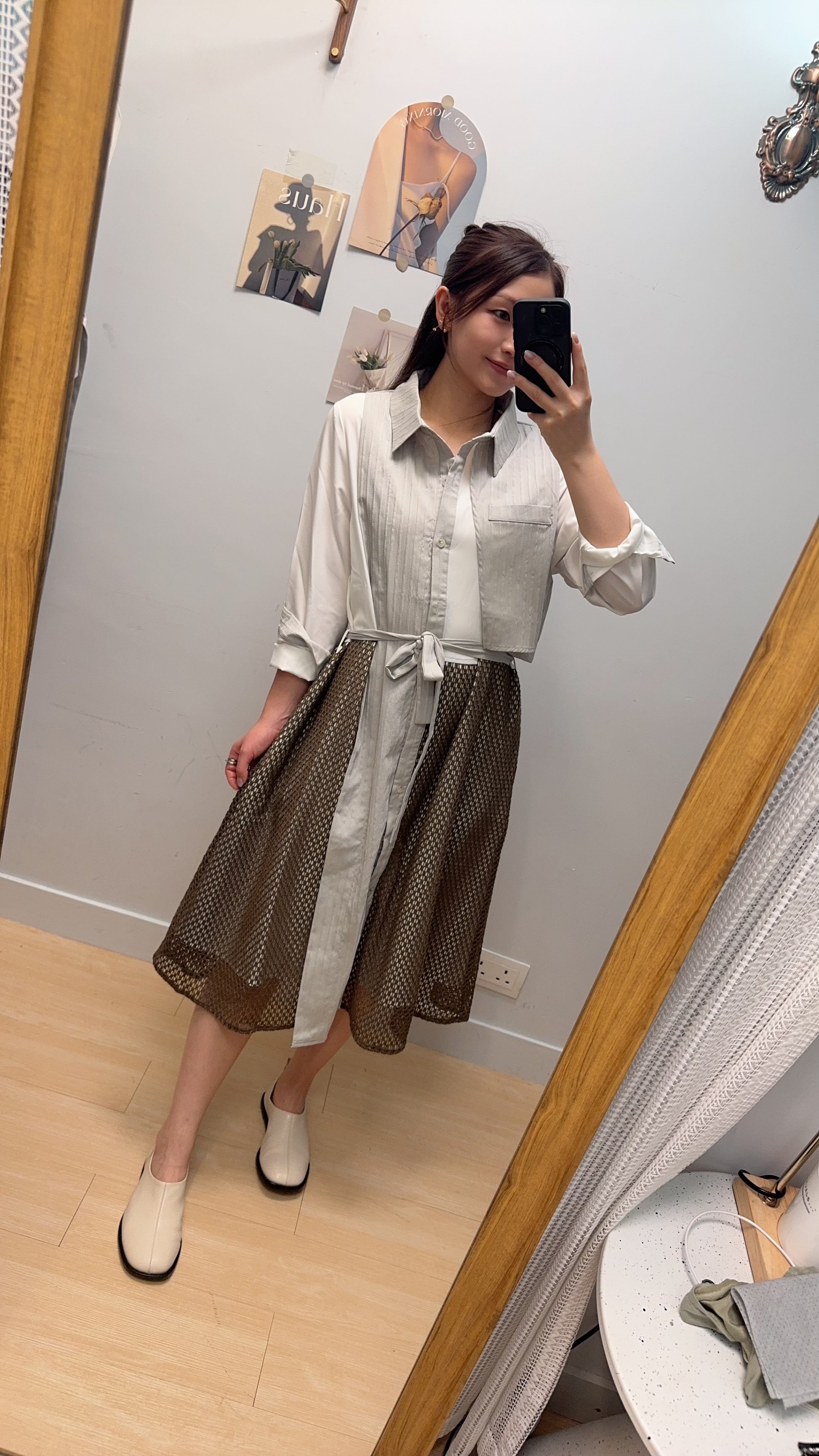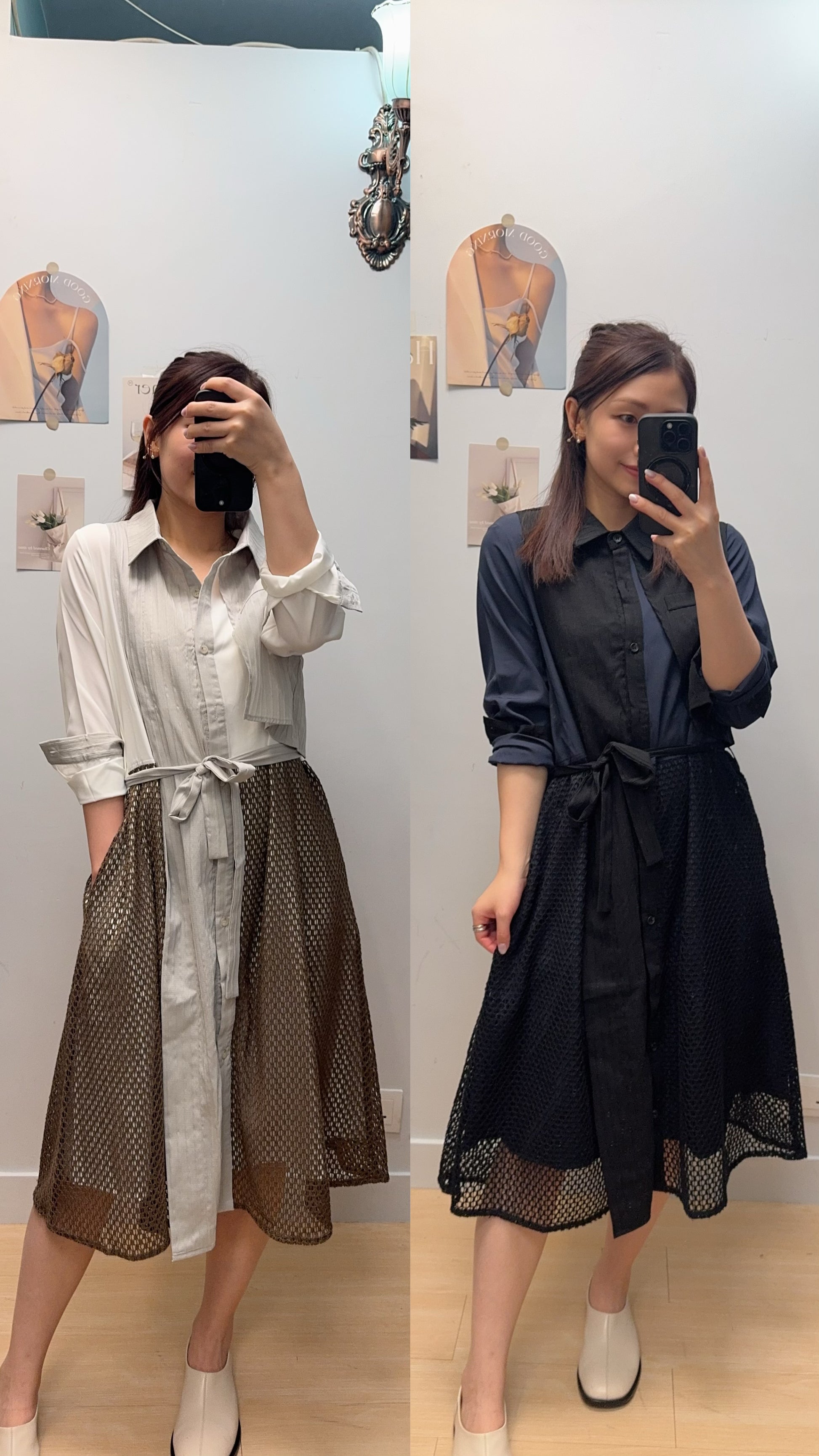 B53710 《暗直紋拼通花OPS》 兩色(杏/黑)