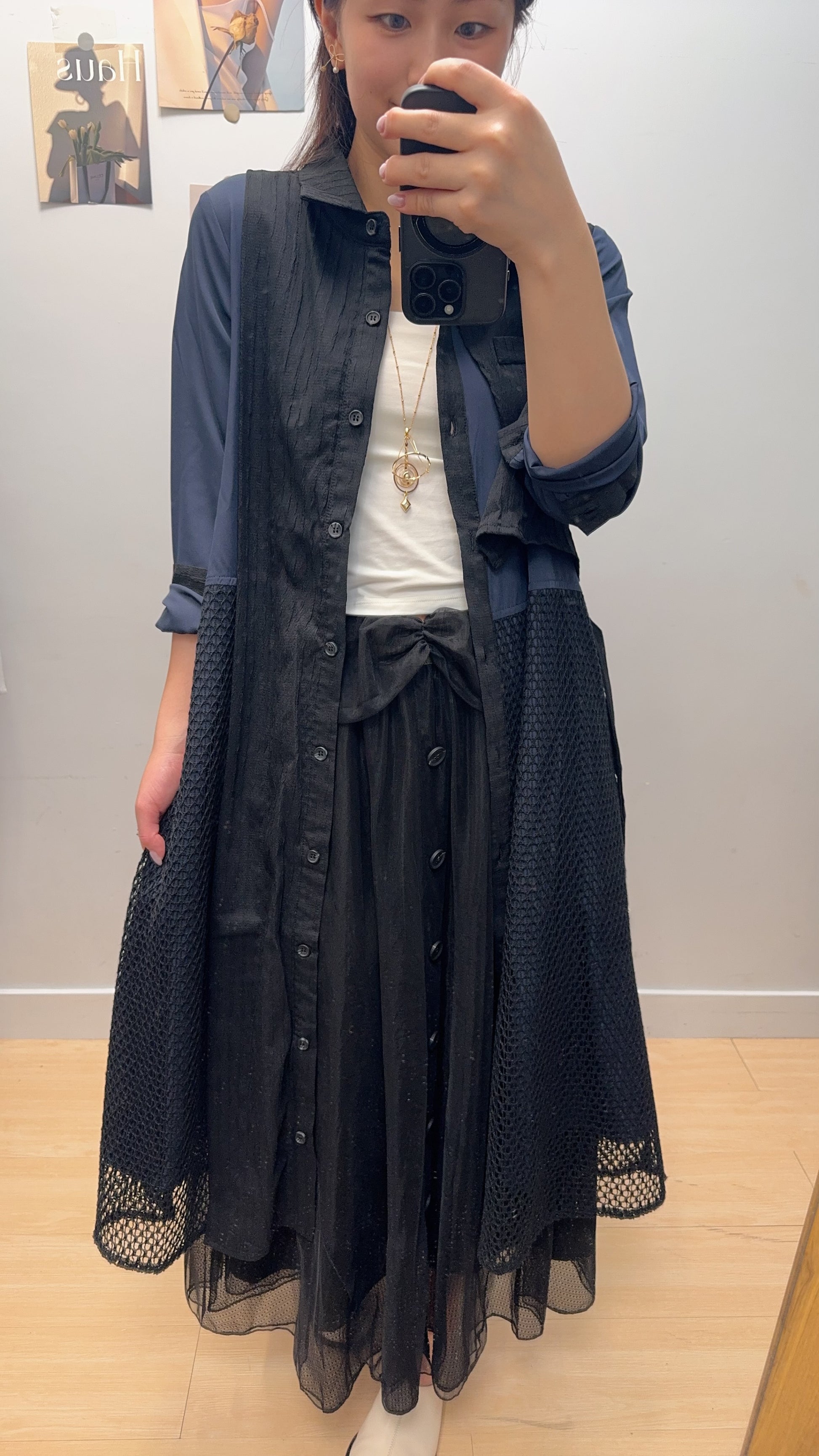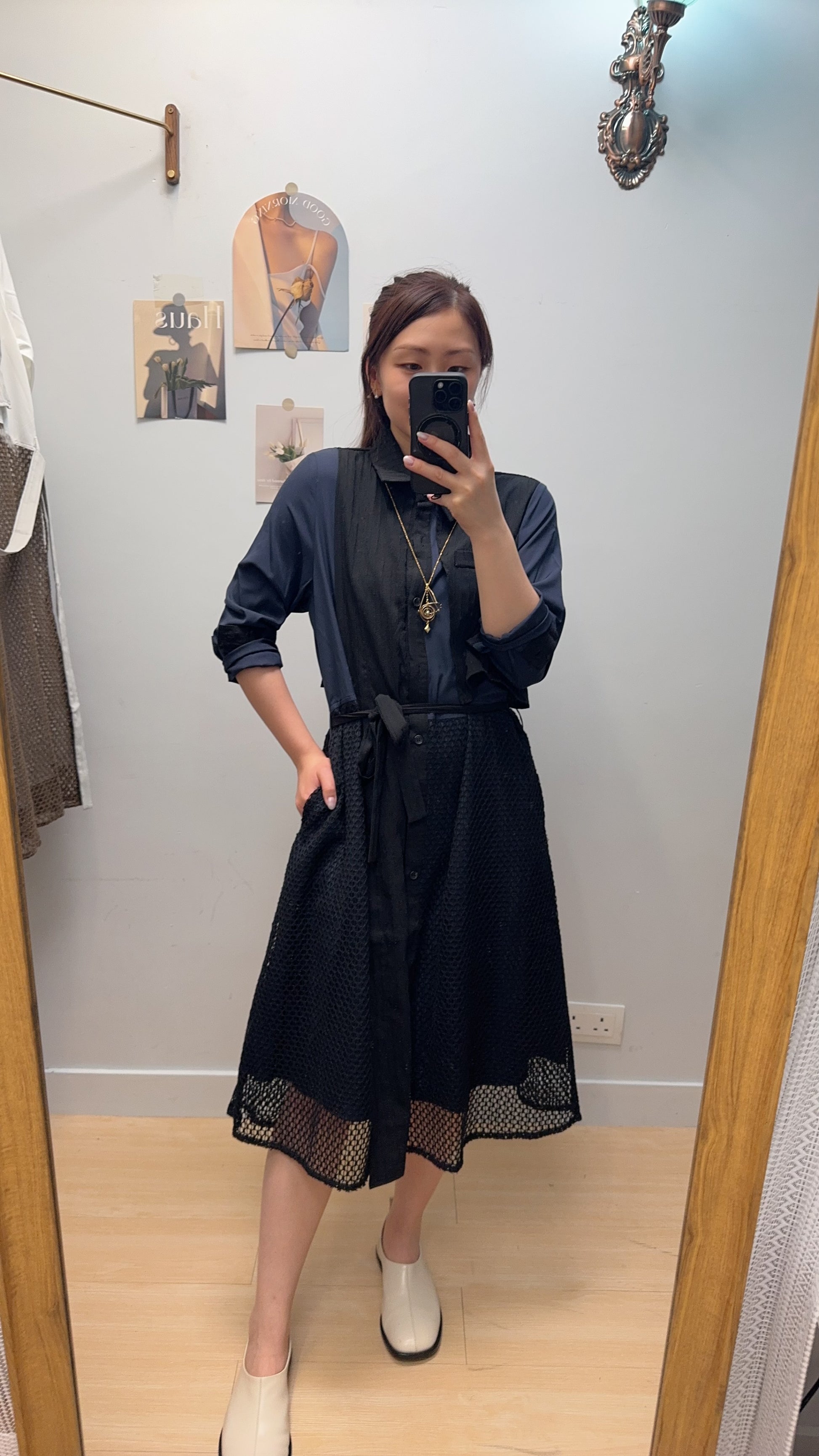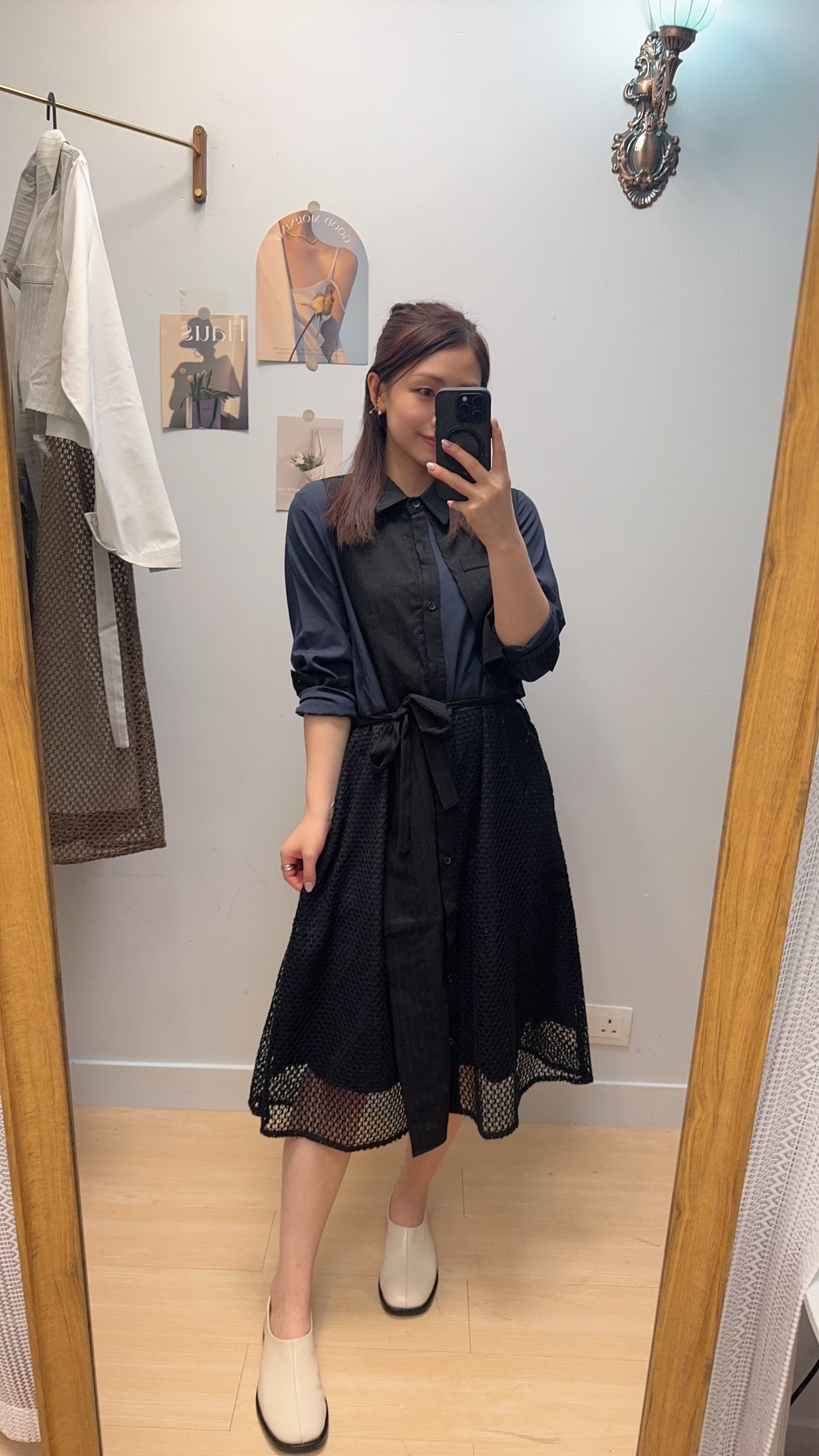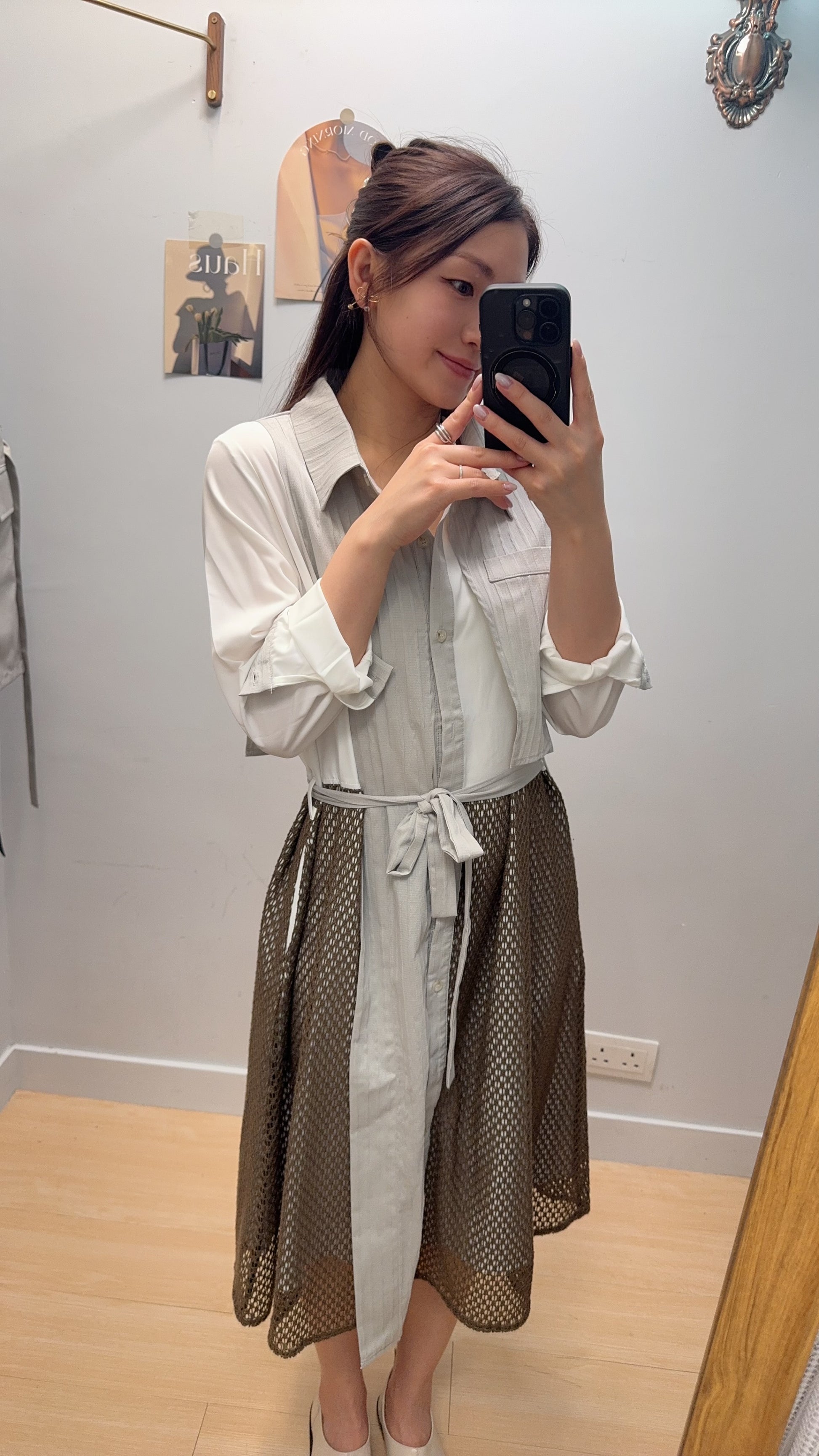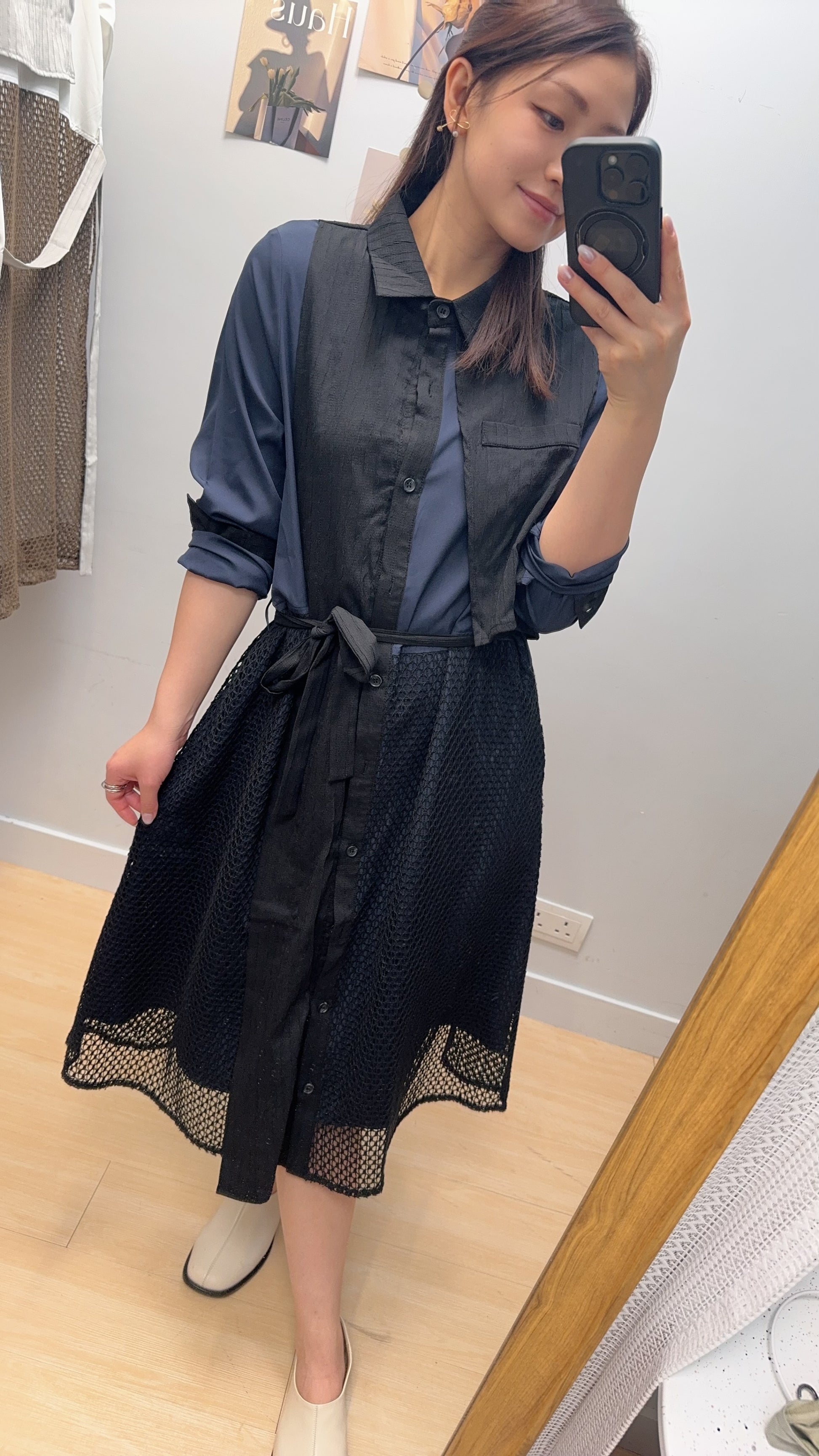 B53710 《暗直紋拼通花OPS》 兩色(杏/黑)