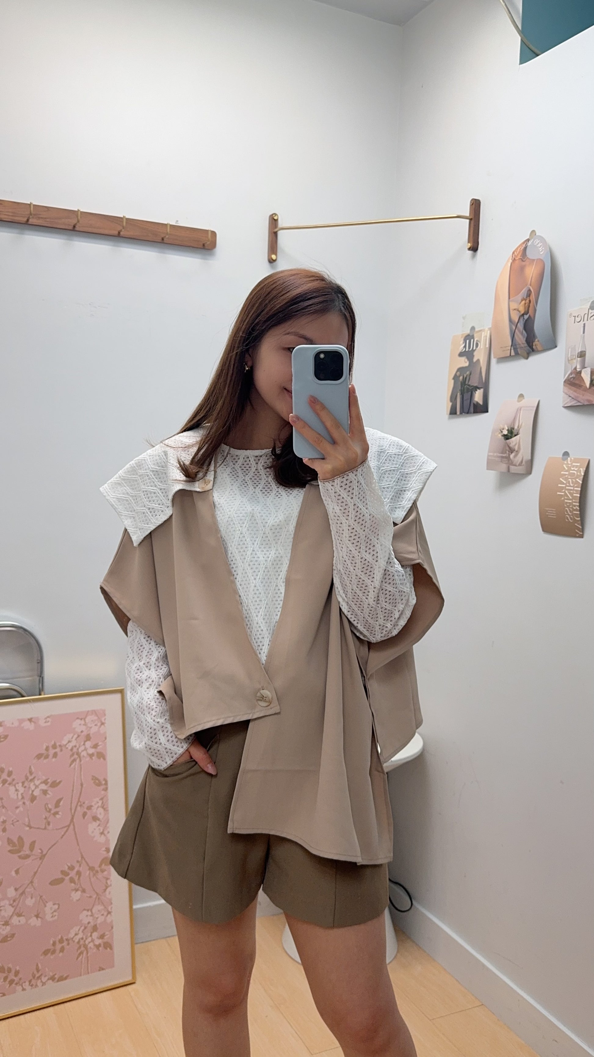 B54511 《兩件套:披肩+百搭線條TOP》兩色(卡其/黑)