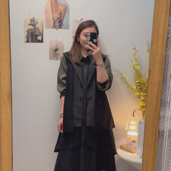 B55811 《西裝外套+假冷衫層次OPS》兩色(藍/黑)