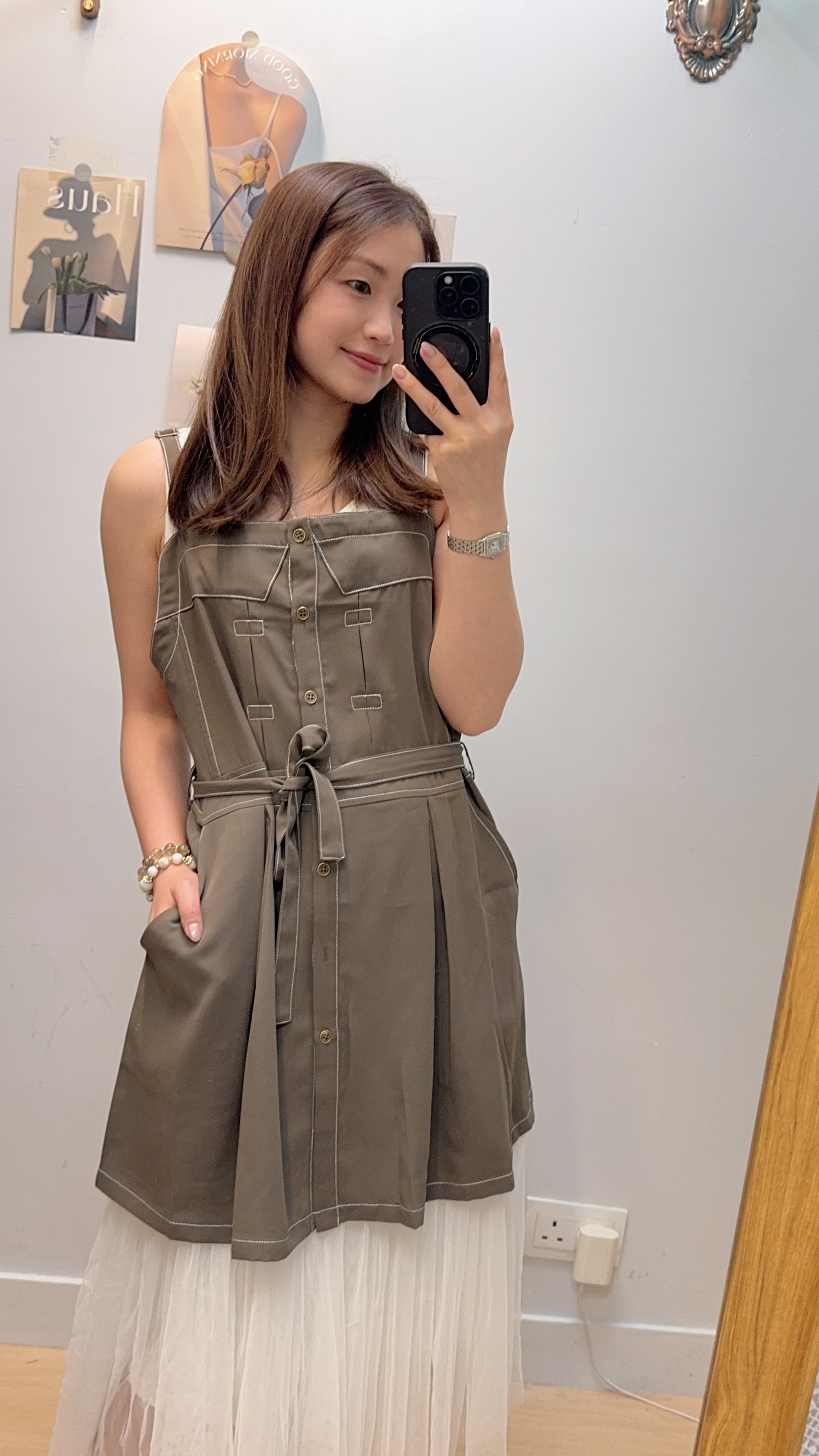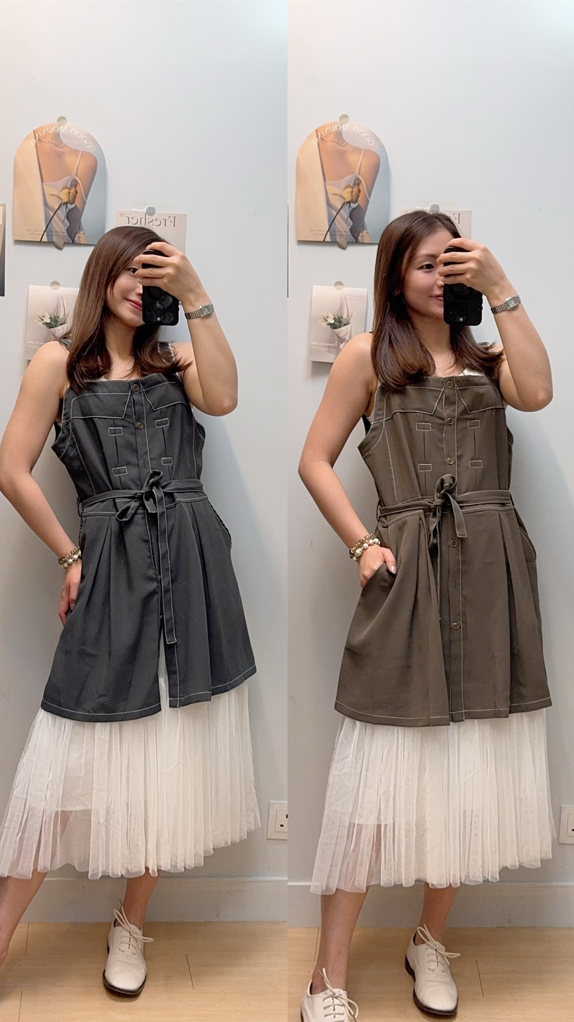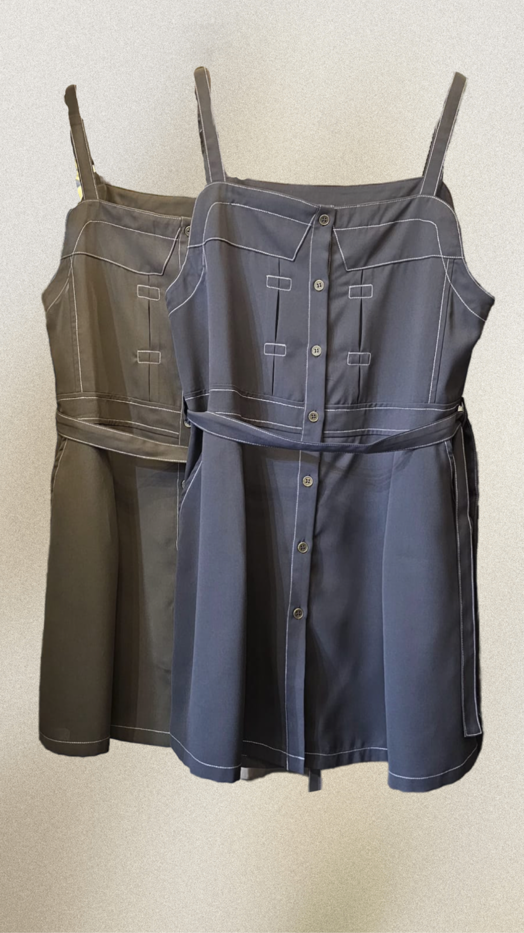 P180010《中長款明線吊帶~襯衫一流》兩色(綠/藍)