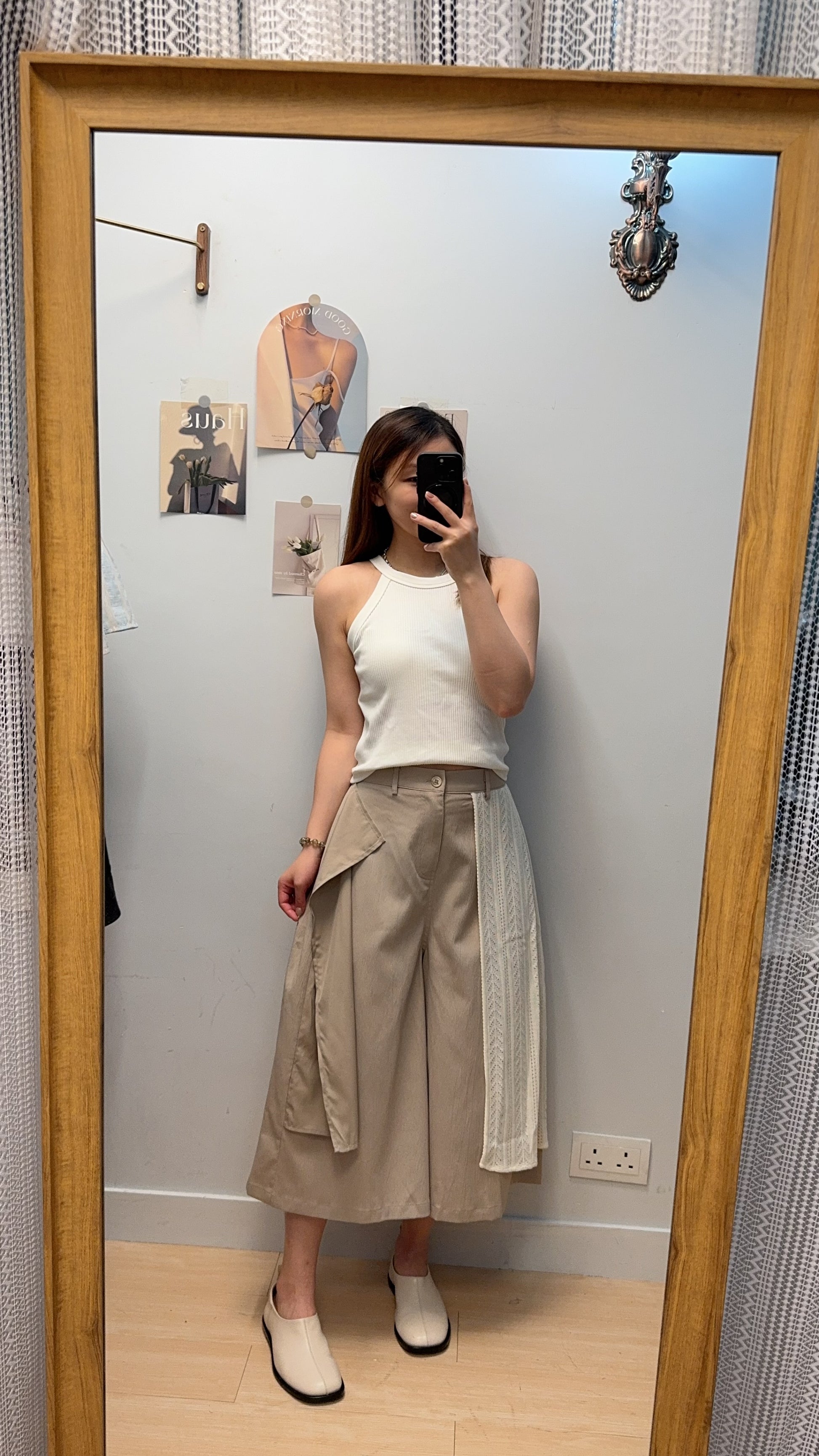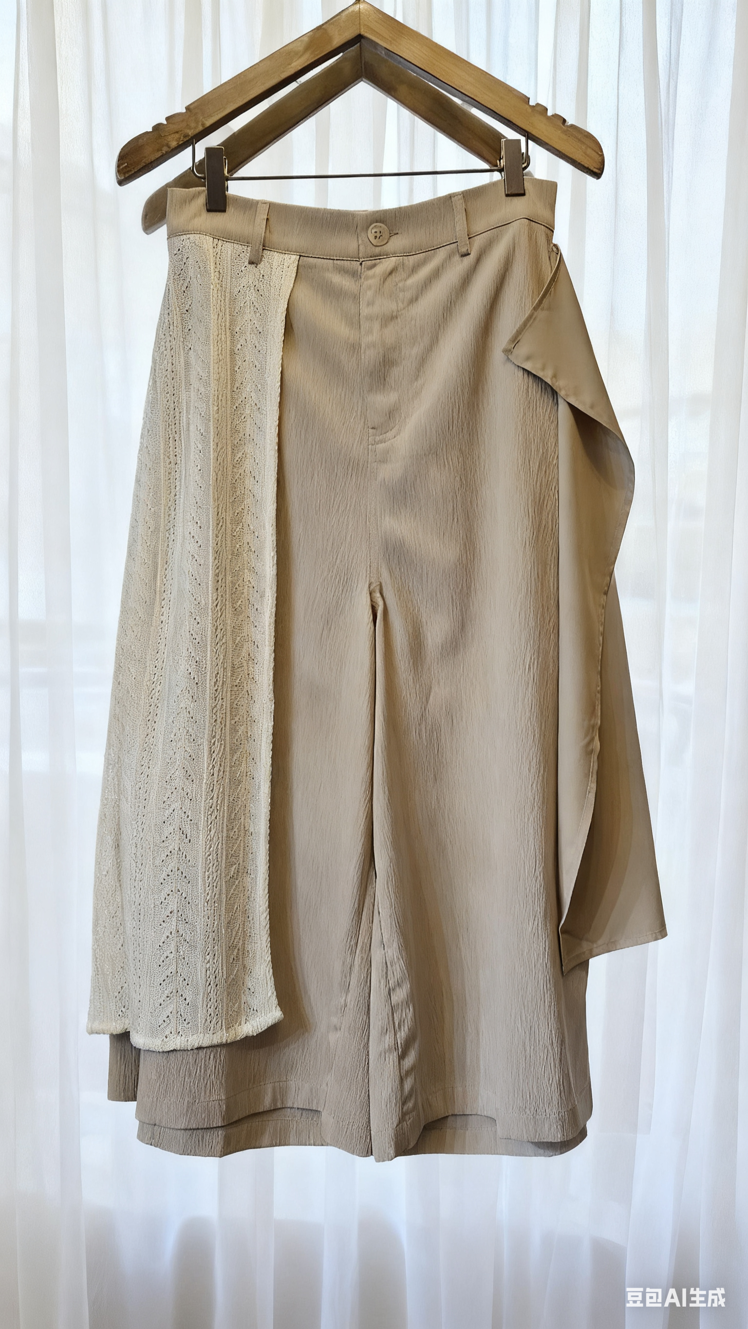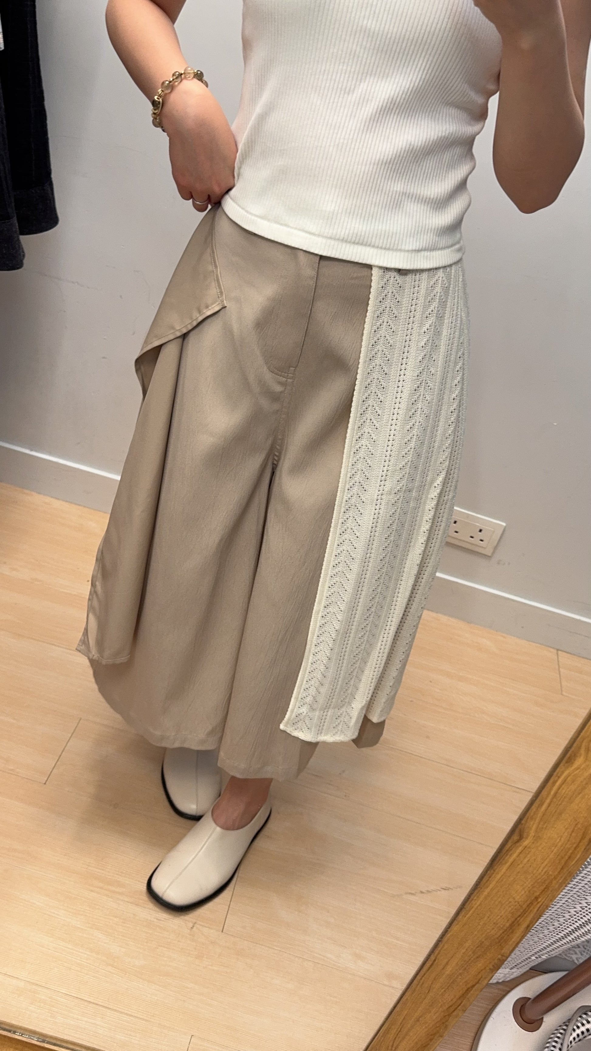 P180409《中長闊褲拼針織布》 兩色(杏/黑)