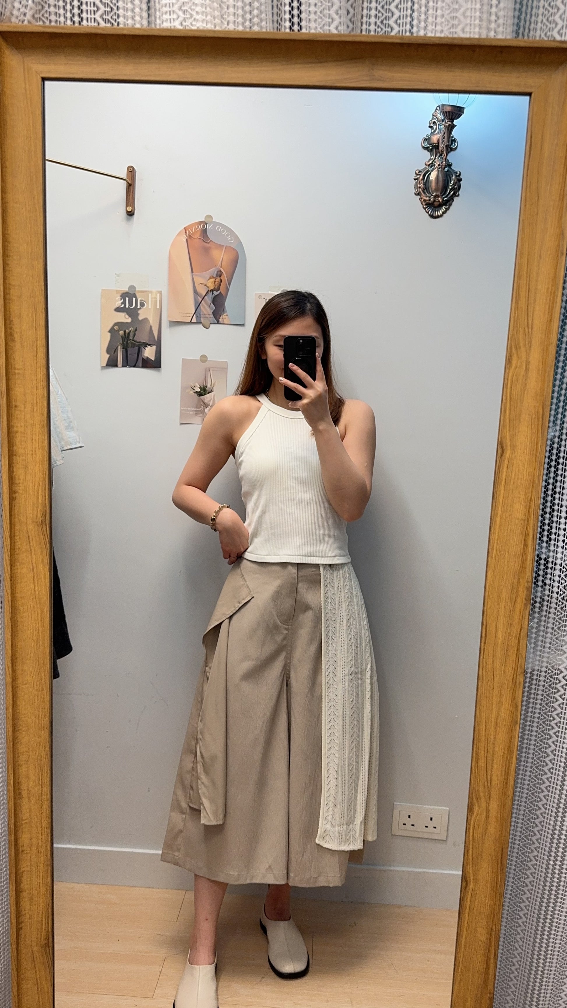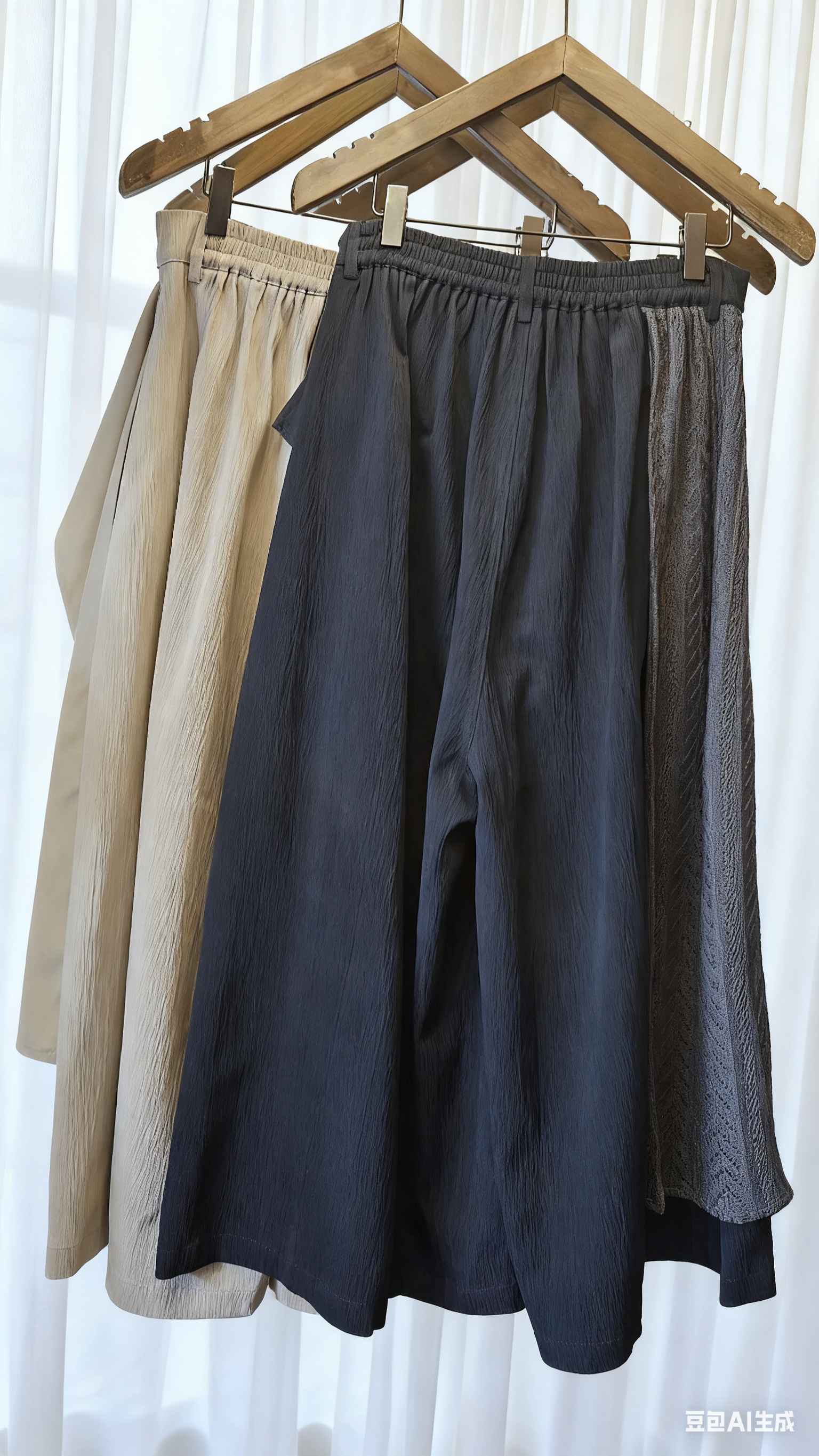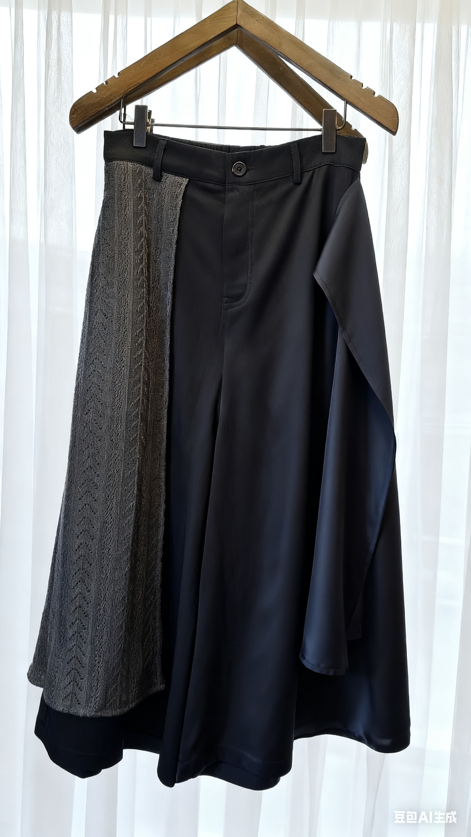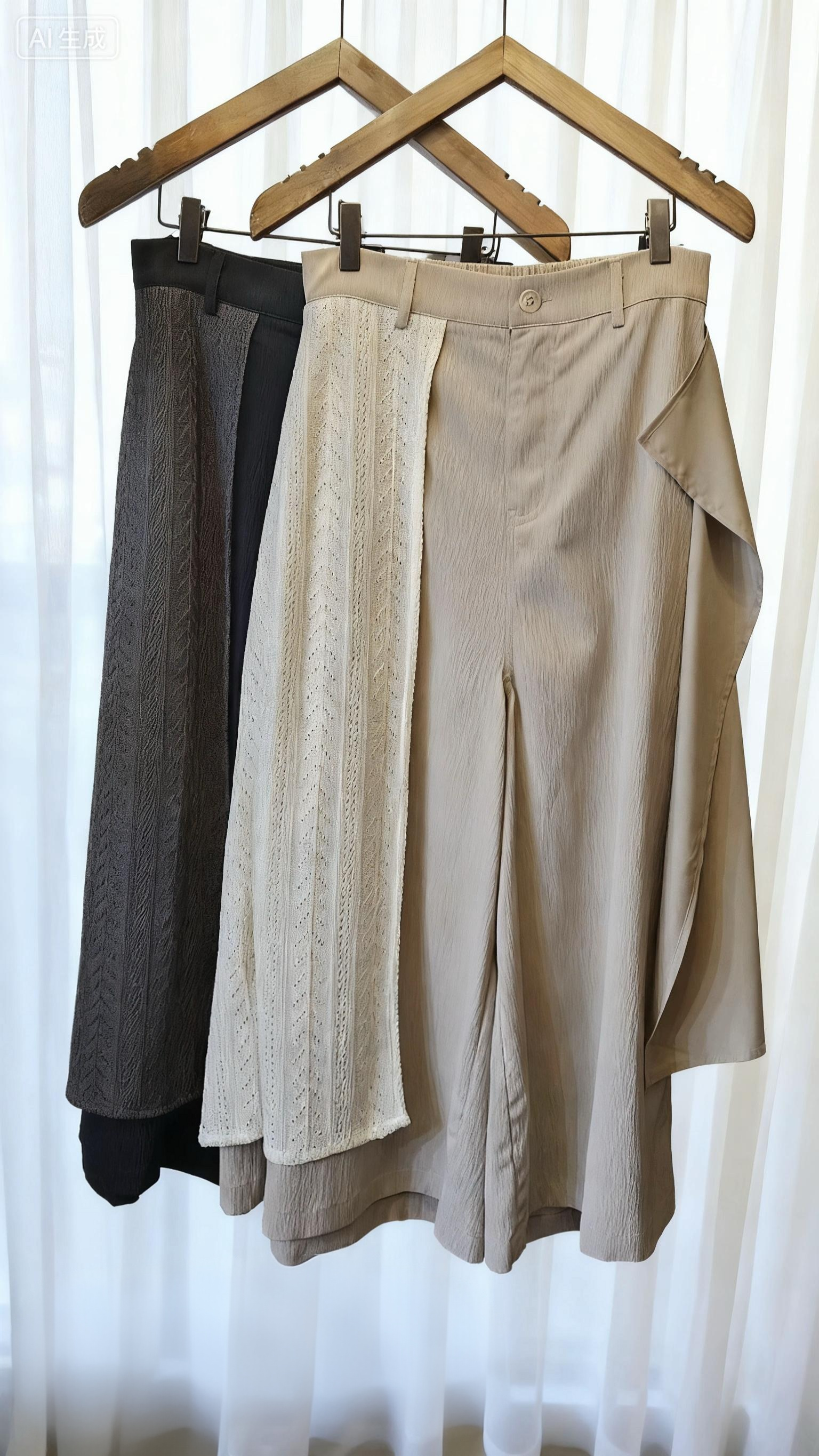P180409《中長闊褲拼針織布》 兩色(杏/黑)